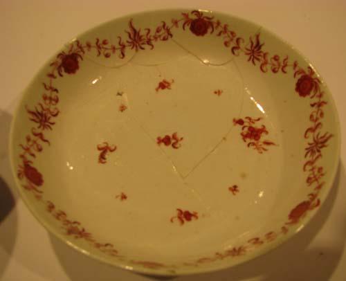 Condition: In generally good condition apart from saucer having been broken extensively and reglued with a small area of loss, a repaired crack at the rim of one of the urns.