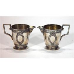 Pair of small WMF silver plated jugs with Greek key and garland designs, marks to handles, 5cm high
