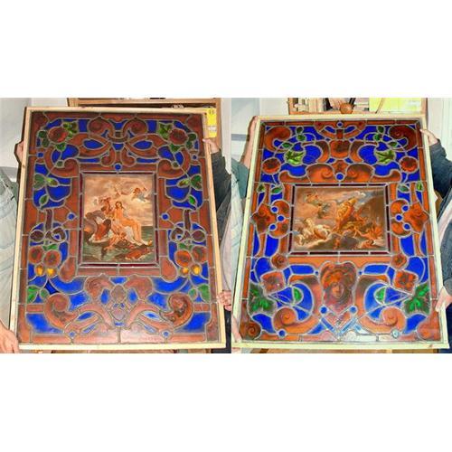 The center glasses are fantastic neo renaissance artworks, in great conditions, high quality photos are available under request.