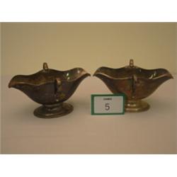 Pair of twin handled silver sauce boats, hallmarked London 1916, bears maker's initials CSH, weight 530g