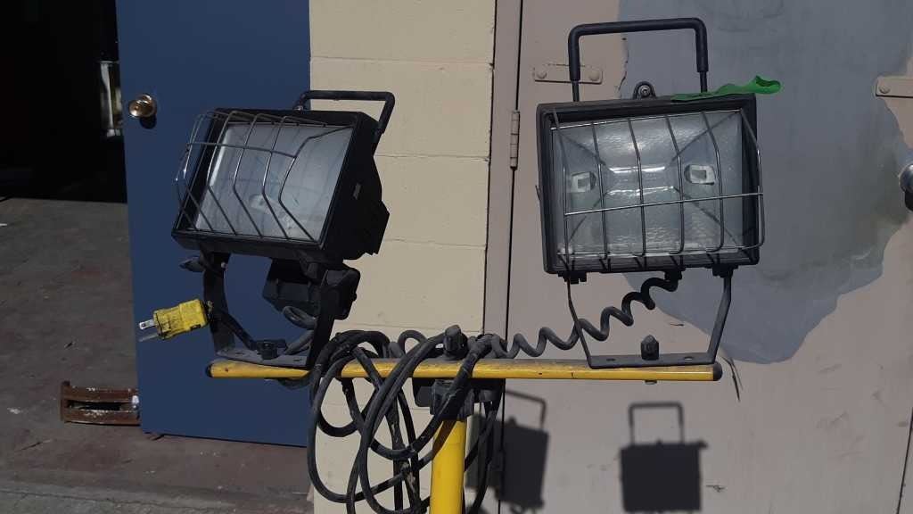 Pair of work lights on metal stand 1 bulb needs to be replaced
