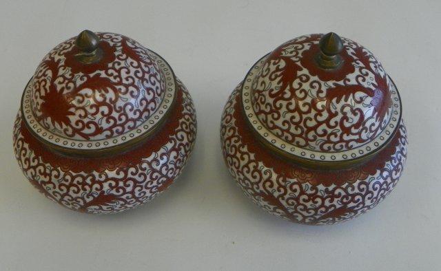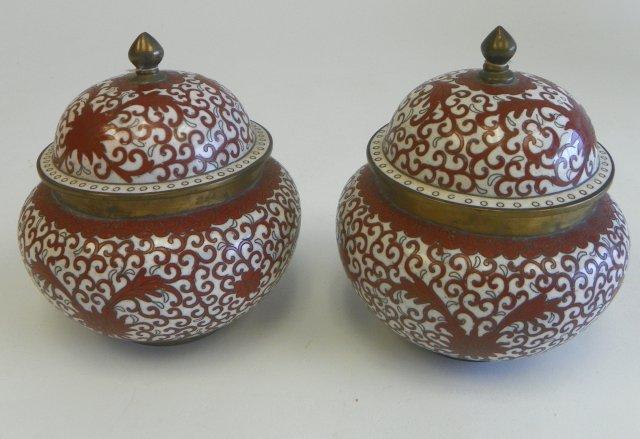 Pair red/white cloisonne covered ginger jars