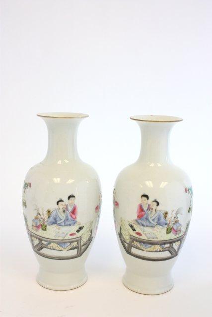 Pair white vase with "Scenes"
