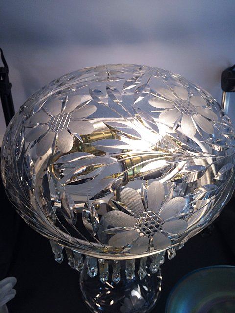 Beautiful antique Pairpoint cut glass table lamp with dome shade. Pairpoint Glass was founded in 1837 and is America's oldest glassworks. All Pairpoint glass is made proudly on Cape Cod, MA, in the shadow of Cape CodÕs iconic Sagamore Bridge. People travel from all over the world to view their showrooms and purchase Pairpoint Glass.