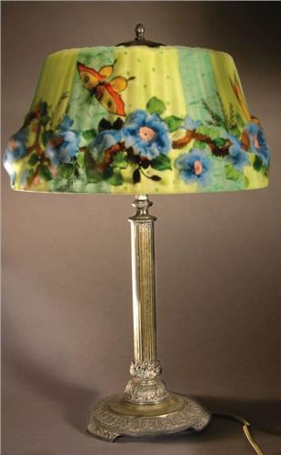 Pairpoint Puffy Butterfly Lamp. Incredible colors to this gorgeous lamp. Would enhance a room at the White House. Extremely Small flake on the rim of shade otherwise mint condition. Shade 14 inch dia. And the Lamp is 22 inches tall.
