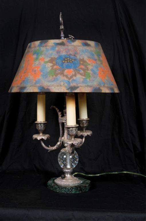 Cracked Shade on this Crystal & Silver Based Pairpoint Lamp- 25" Tall- 900-1500