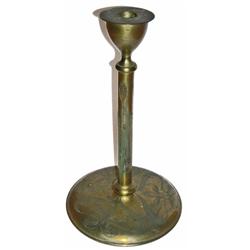 Pairpoint candlestick, bronze metal with incised Art Nouveau design, original patina, marked, #6193, 12.5”h