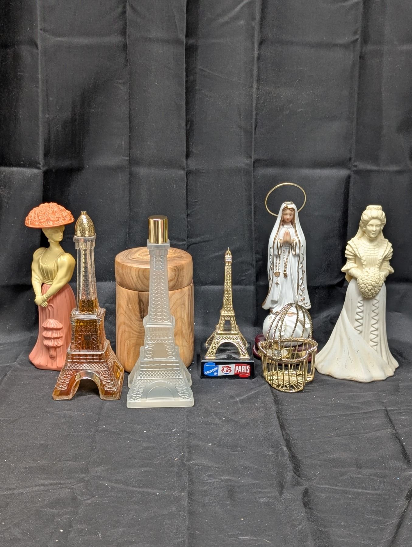 Pairs items, Woman Statues, Avon Bottles of Eiffel Tower, and etc.