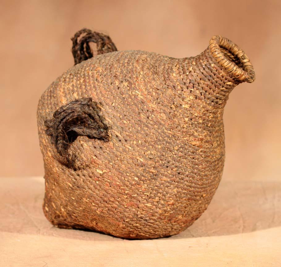 Paiute Tus Water Vessel. 11 ½" x 7". Horsehair handles, tightly woven. Circa 1890-1900. (est $700-1,000). Provenance: Bethany College, Lindsborg, KS. . For condition reports please visit: www.auctioninsantafe.com/cr2011.pdf