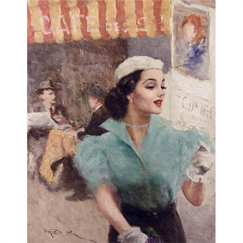 Hungarian [1893-1976] WOMAN BY A PARISIAN CAFE oil on board 30 x 24 in. (76.2 x 61 cm) signed