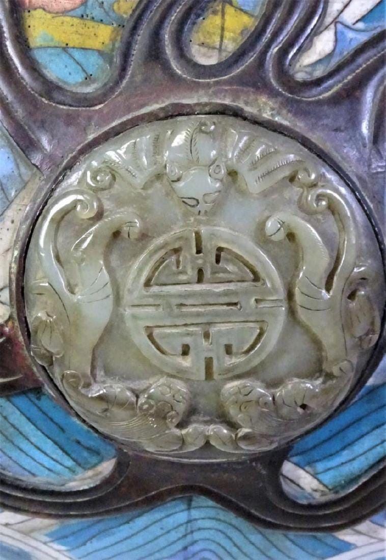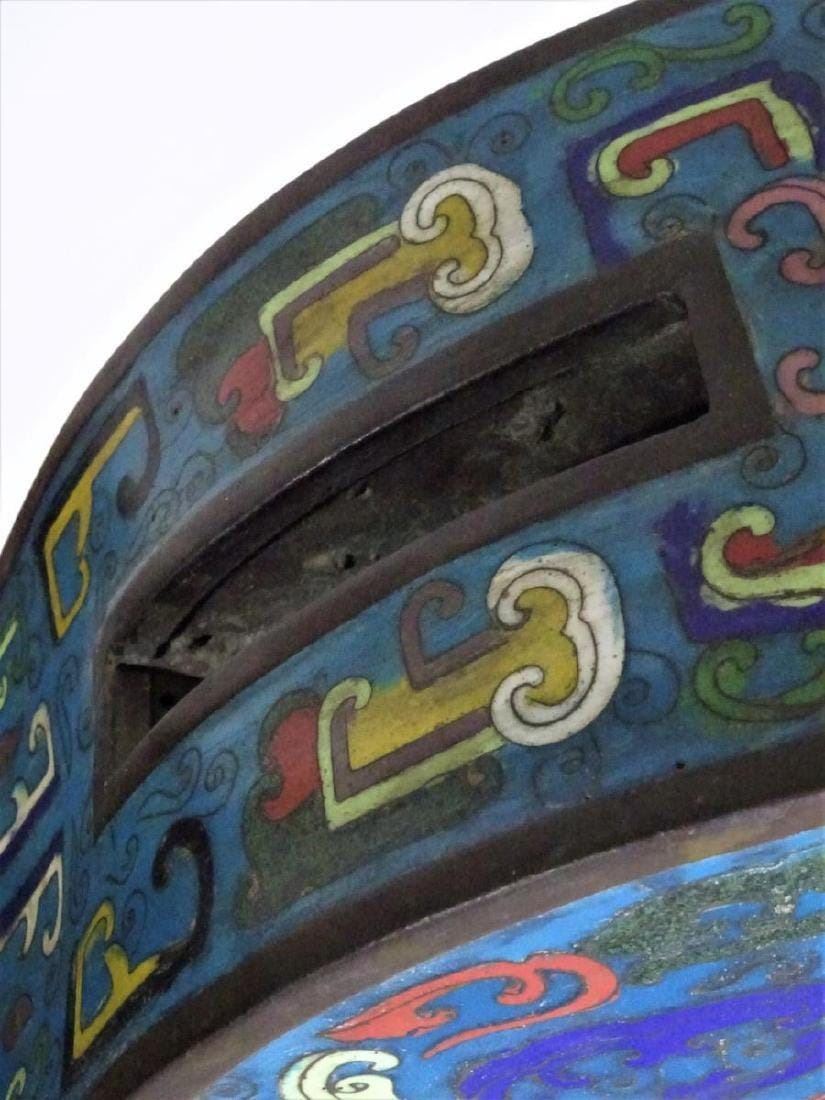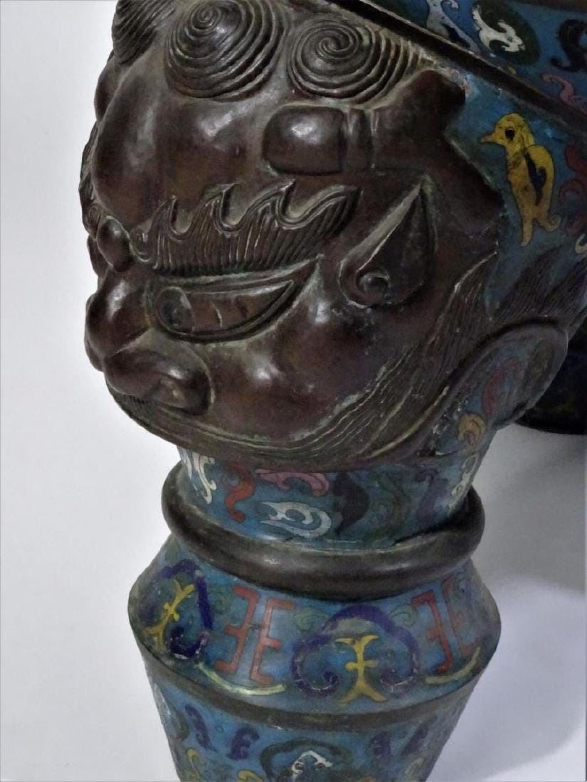 Height: 4 ft. Diameter: 3 1/4 ft. Depicting a dragon amidst waves chasing a flaming pearl with foo dog legs.