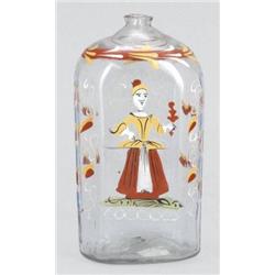 Csehország, 18. sz. közepe, színtelen hutaüveg, zománcfestett "Tobias Rombaldt....." felirattal, m: 15 cm