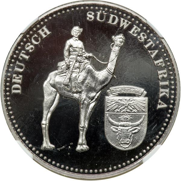 Palau. 5 Dollars struck in Palladium, 1999. Design of KM-23. Weight One Ounce. German South West Africa. Reverse: Wilhelm II. Only 7 Pieces struck in palladium. Extremely Rare. NGC graded Proof 65 Ultra Cameo.
