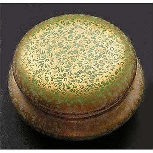 <tr><td>Title:Pale Green Limoge w Gold Floral Overlay Jar</td></tr>