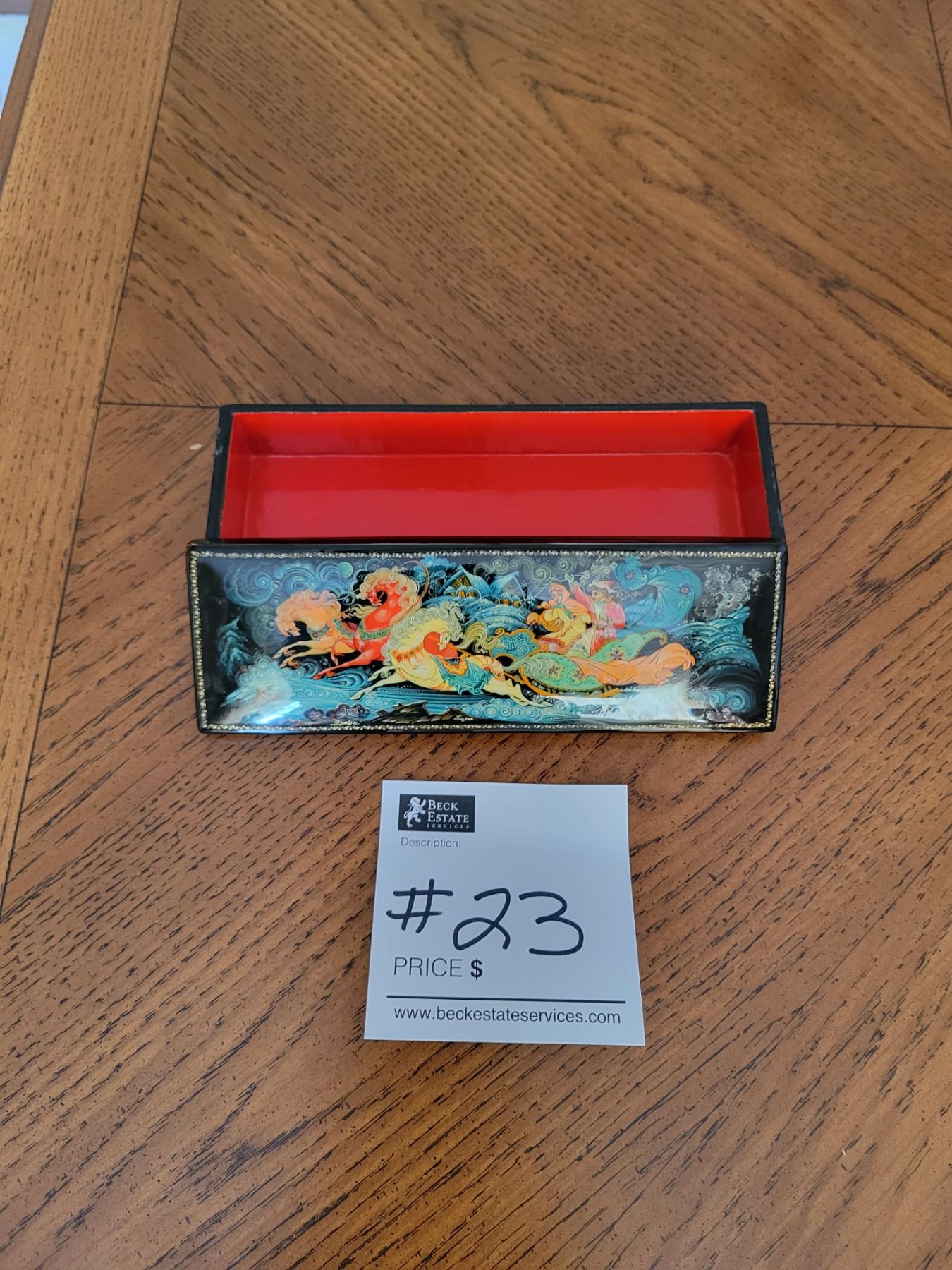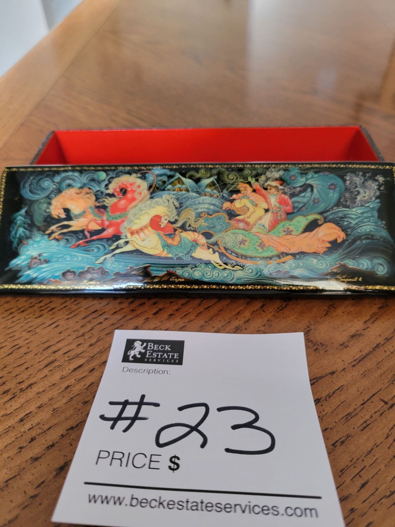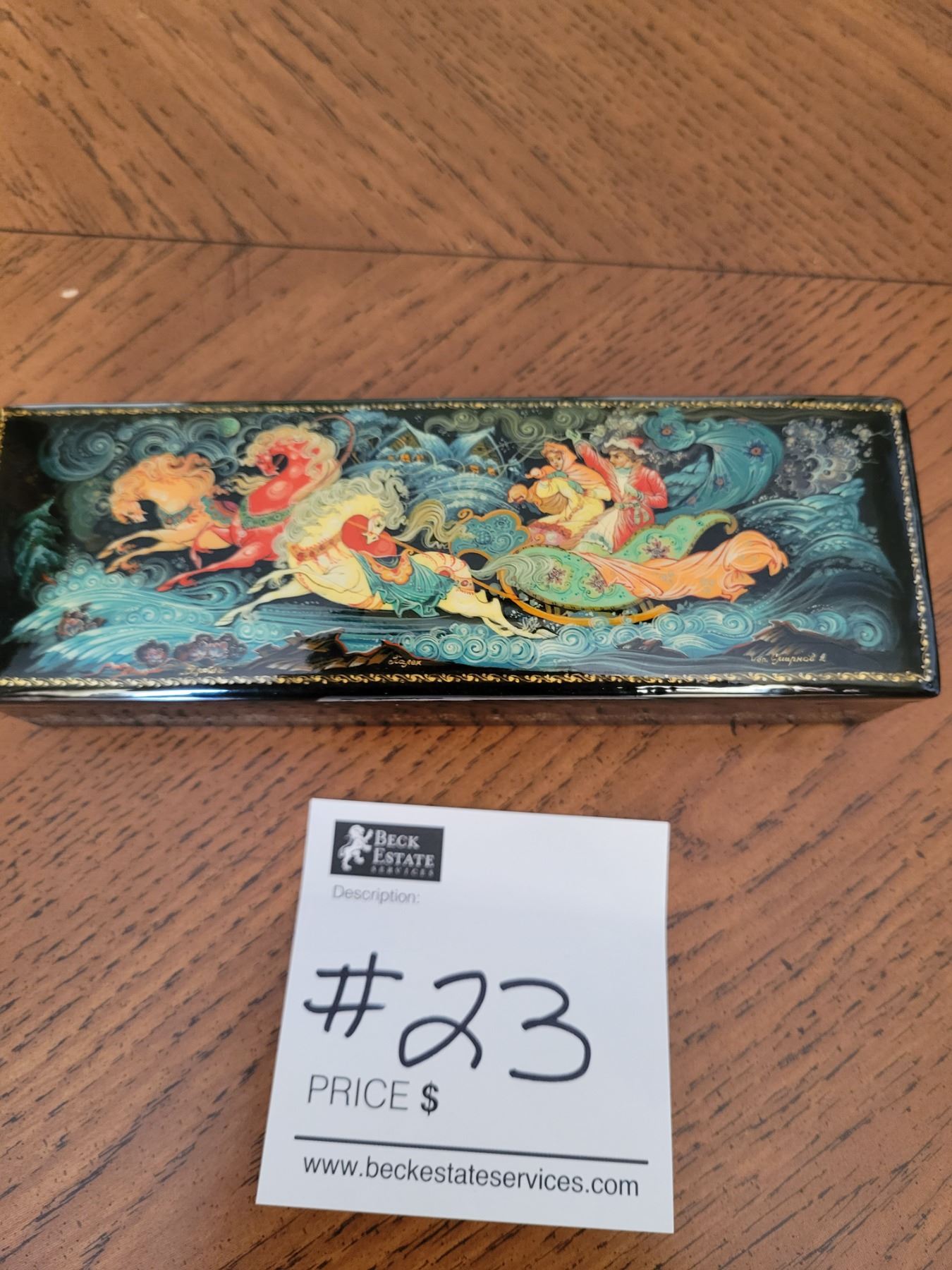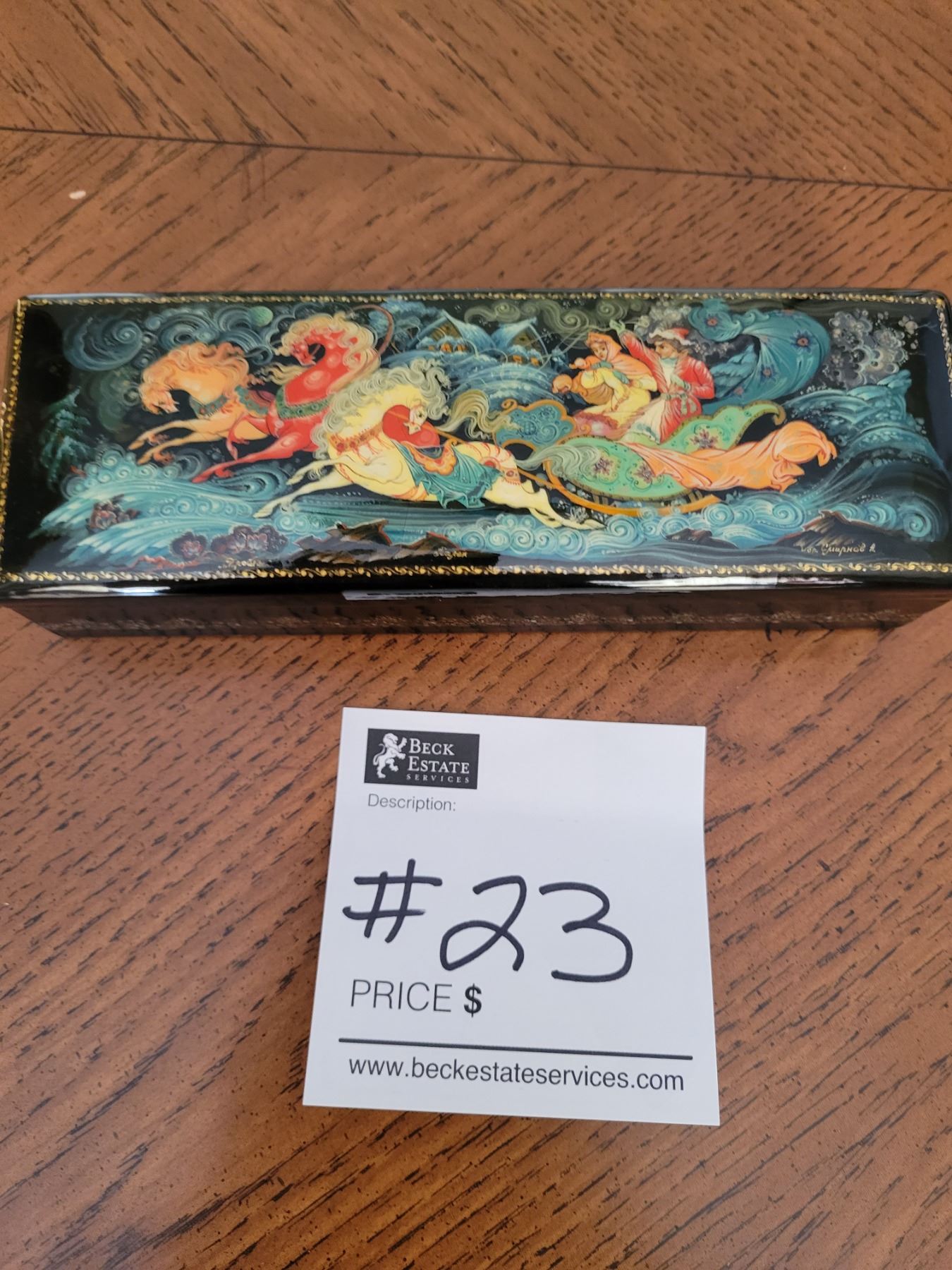 Rectangular, Framed by Elaborate Gilt Border Band 1 5/8"h x 7 1/8"w x 2 3/8"d and it is signed.