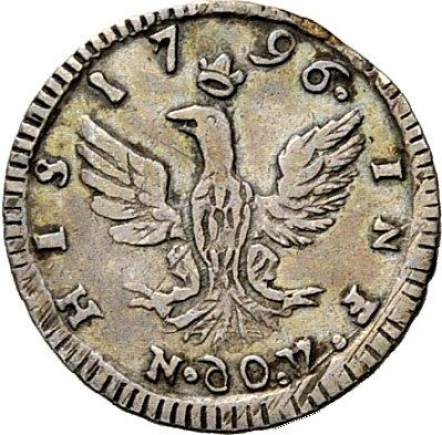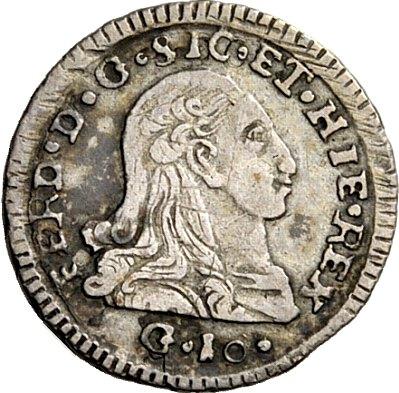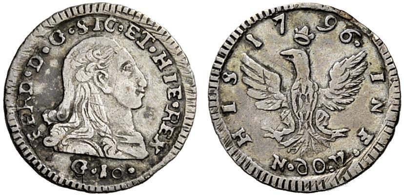 Palermo. Ferdinando III poi I di Borbone, 1759-1825. Mezzo tarì 1796. AR 1,09g. FERD.D.G.SIC.ET.HIE.REX Busto corazzato a d.; sotto, G.10. Rv. HIS. – INF Aquila coronata ad ali spiegate e volta a s.; sotto, sigle, N.d’ – O.V. Spahr 80. MIR 627. q.Spl / buon BB