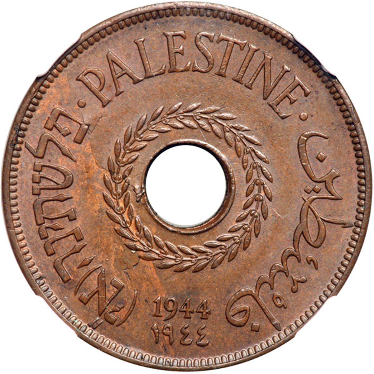 Palestine. 20 Mils, 1944. KM-5a. Bronze. Scarce in grade. NGC graded MS-63 Brown.