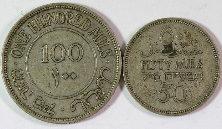 Palestine, Fifty Mils and One Hundred Mils, British administration, 1939 (KM.6,7)