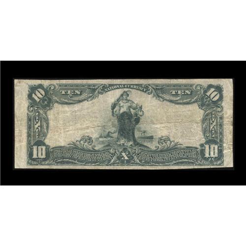 <B>Palestine, TX</B></I> - $10 1902 Plain Back Fr. 624 <B>The Royall NB</B></I> Ch. # (S)7170<BR>There are numerous slight wrinkles and light folds that prevent a higher grade on this <B>Fine+</B></I> representative form this family-owned bank. The stamped signatures are present, and the paper retains much crispness. President Tucker Royall would go on to enter Dallas banking circles. Chartered in 1904, this bank has 13 Large documented.