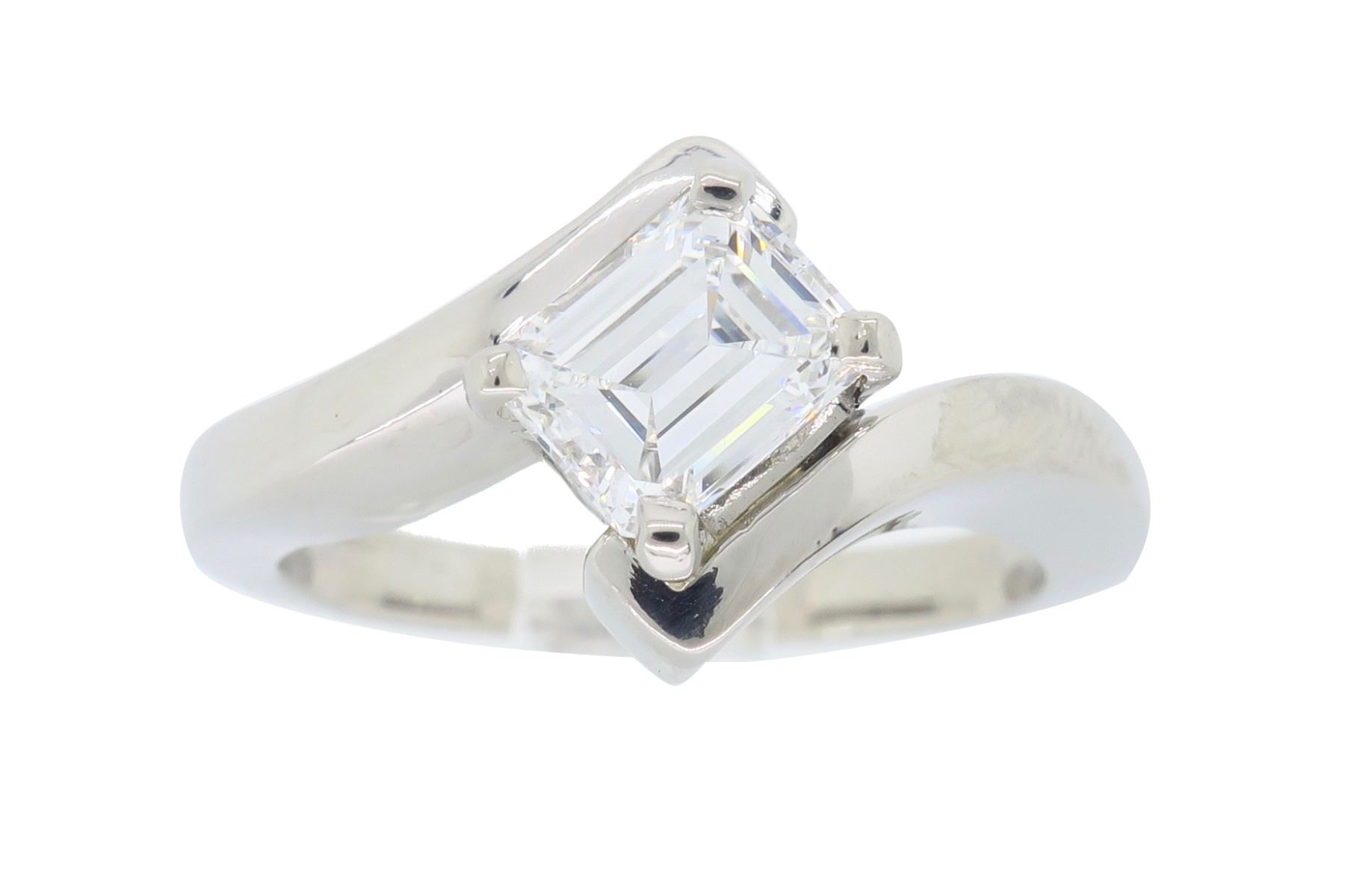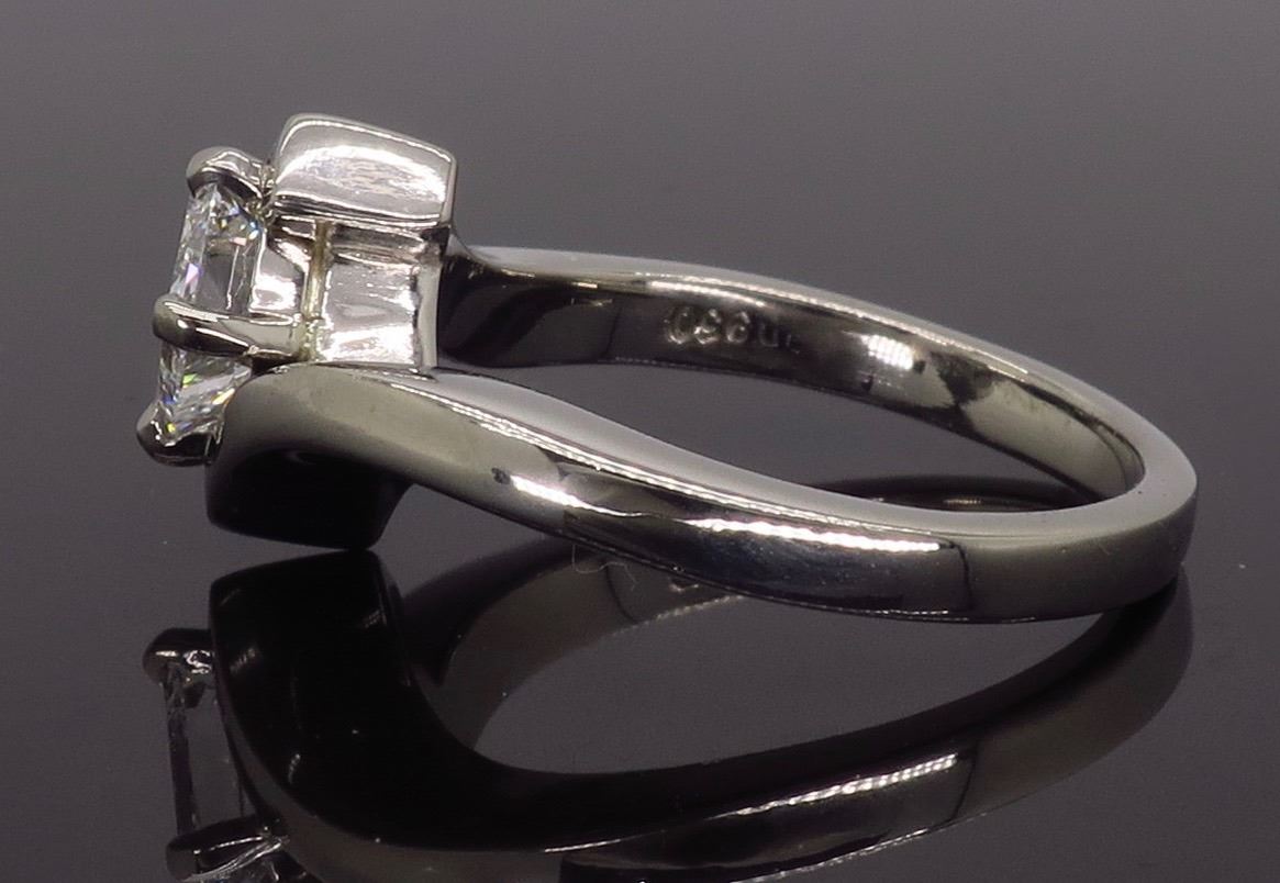 One Palladium 0.67ct Diamond Ring. (1) Emerald cut Diamond with a total weight of 0.67cts with a color of F and clarity of VS-1. Total weight of this ring is 5.6 grams. Ring is size 6.75.