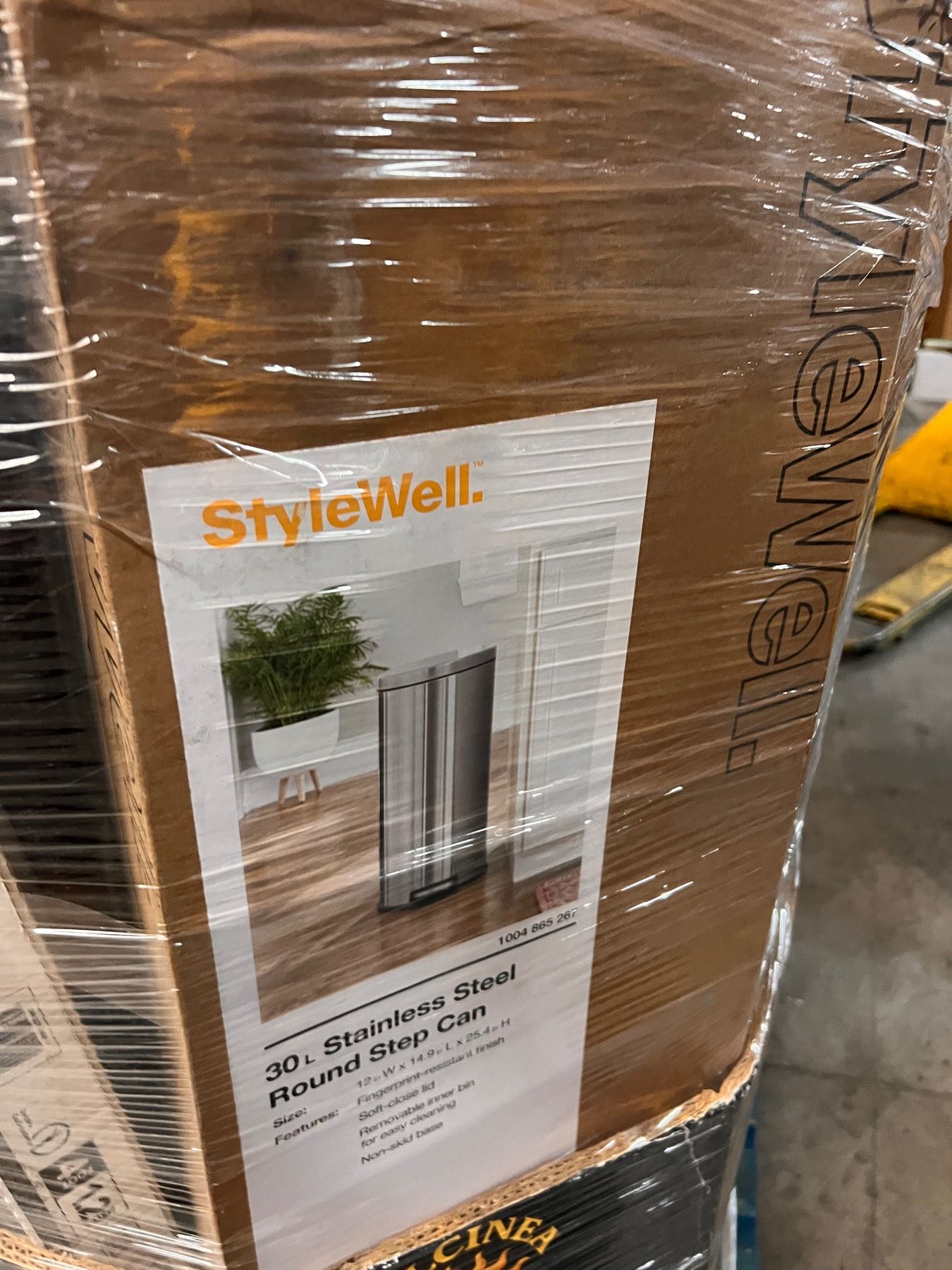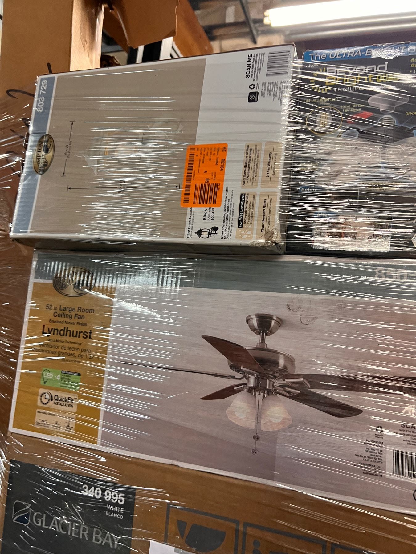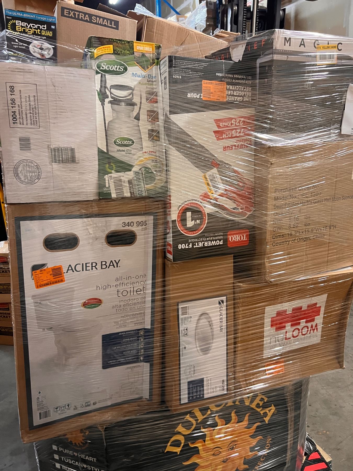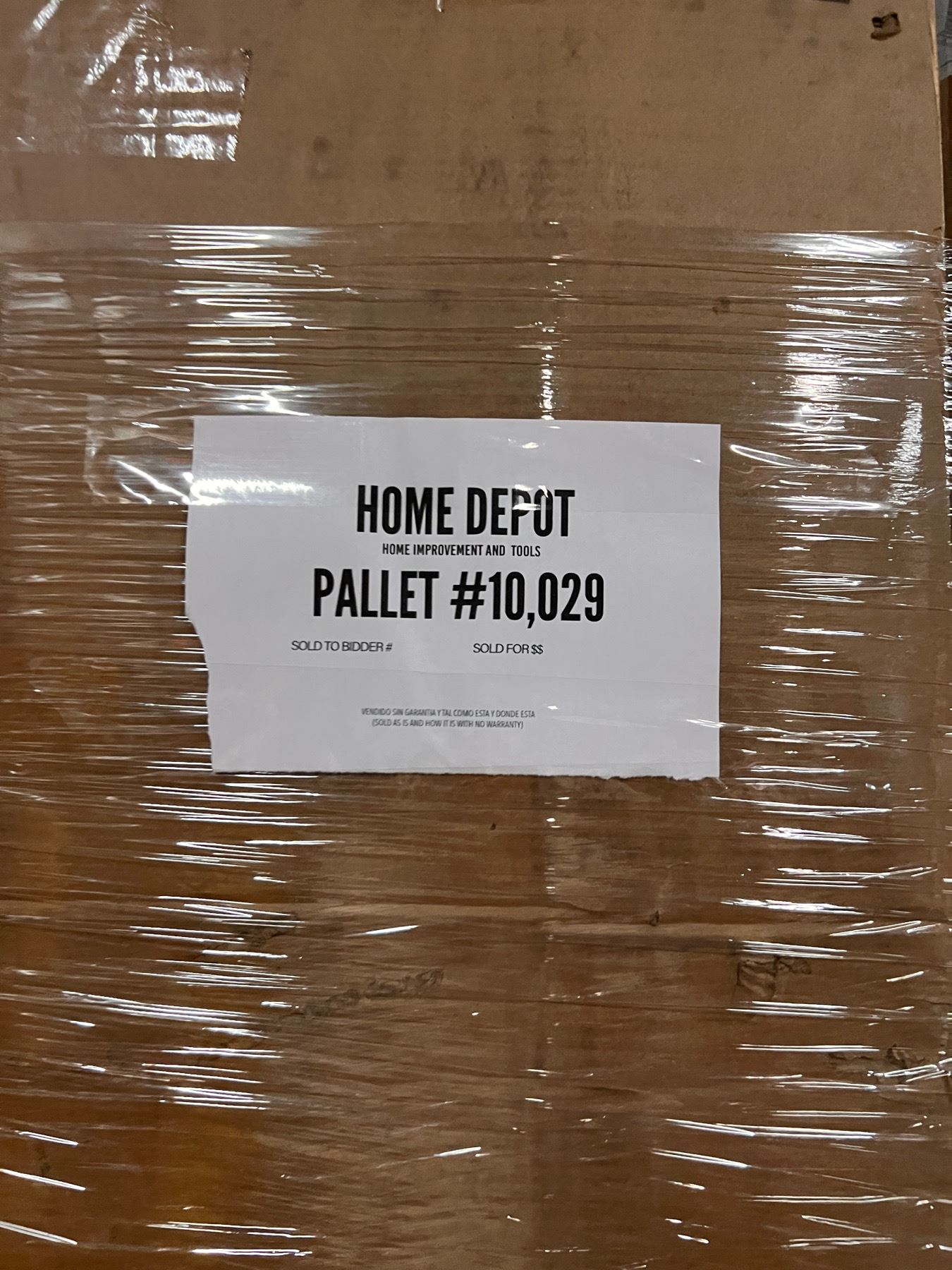 Pallet con Mercancia de Home Depot, retornos, liquidaciones y sobrecargos.