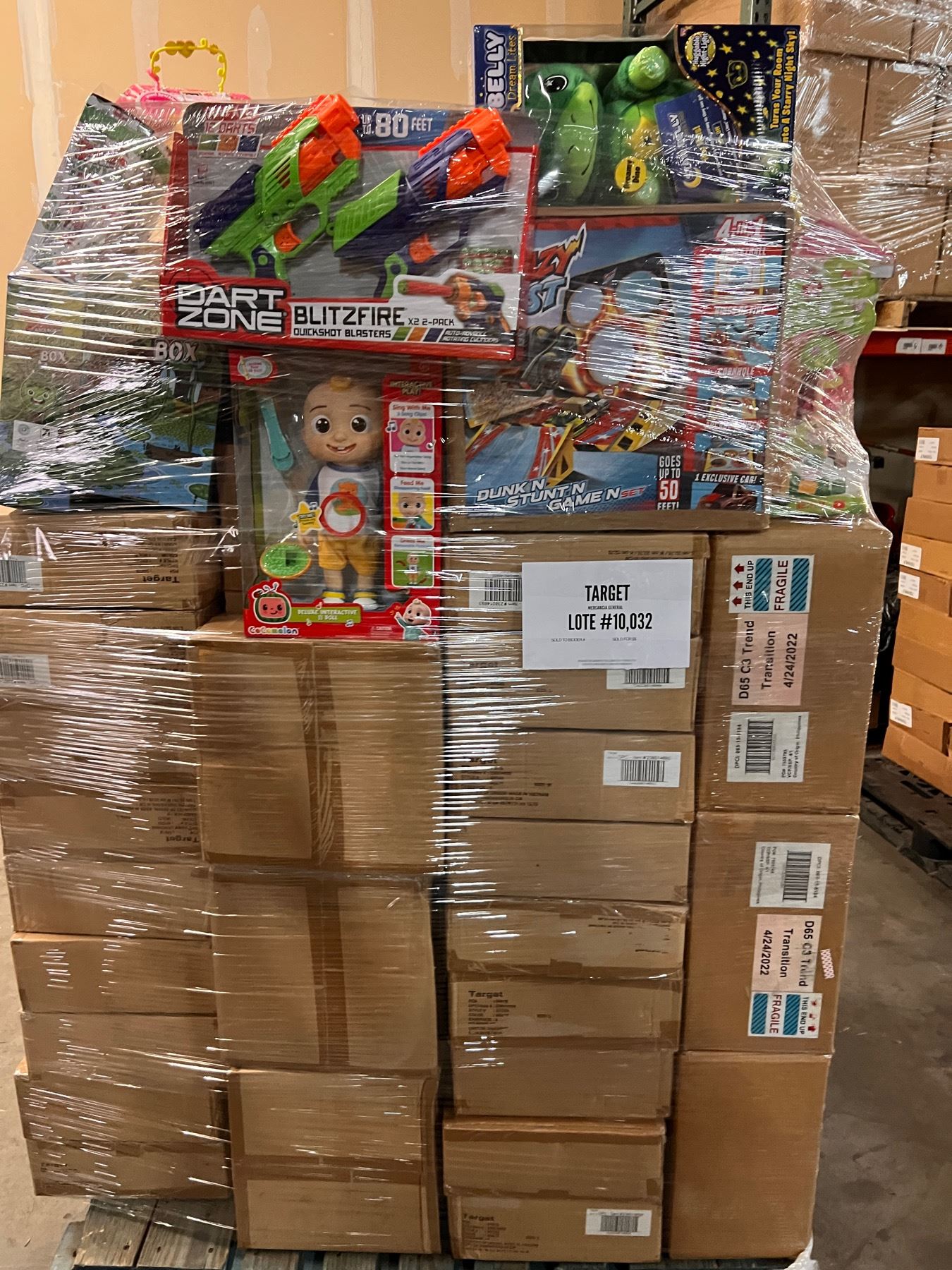 Pallet de Mercancia de Target, clasificada como retornos, liquidaciones y sobrecargos.