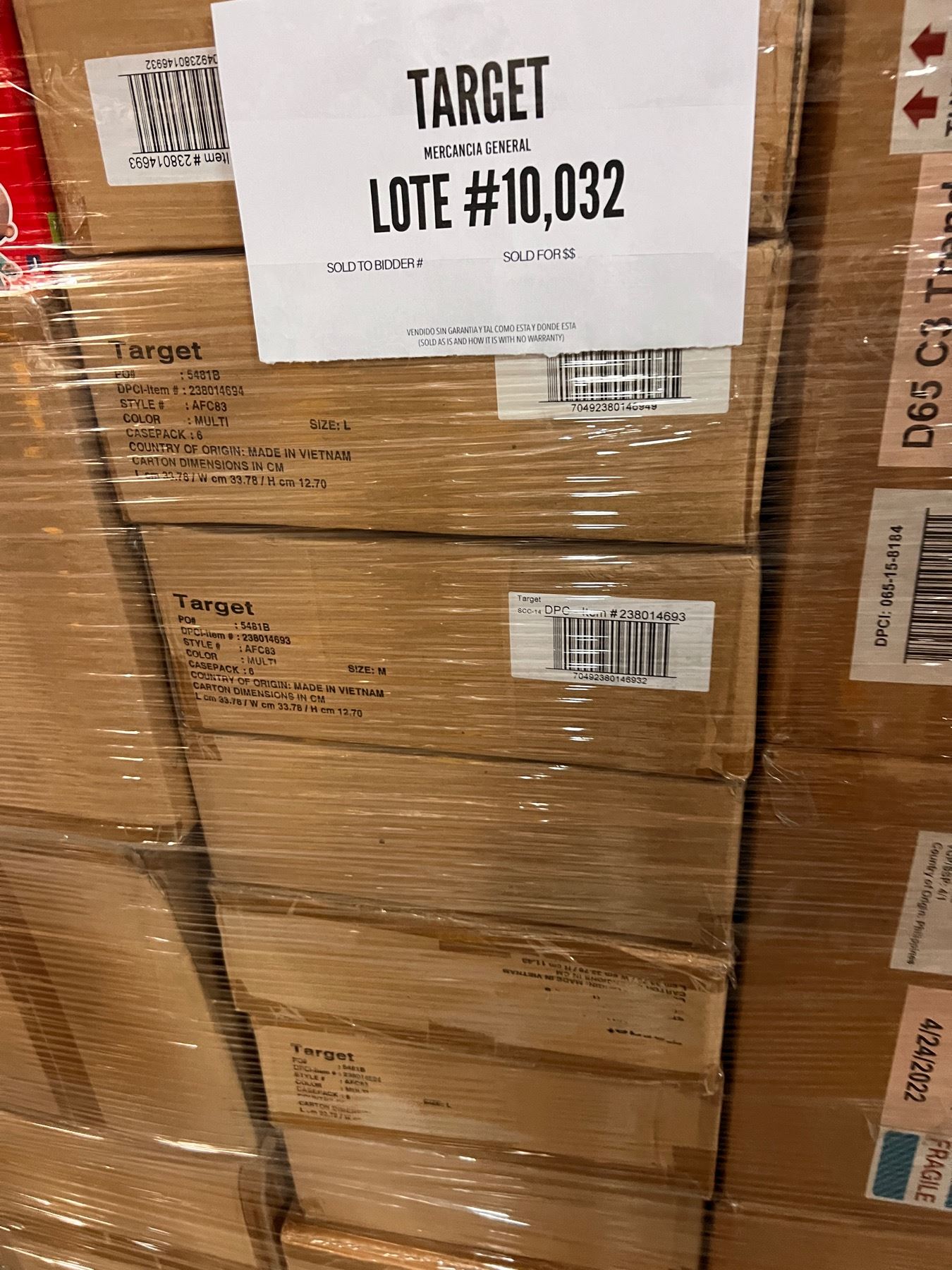 Bienvenidos a nuestros eventos de subasta de pallets, primero que nada te hacemos presentes nuestros términos y condiciones en cada evento de subasta presente. Al someter una apuesta u oferta en cualquiera de nuestros pallets/lotes estás aceptando nuestros términos y condiciones. Toda nuestra mercancía disponible a la venta en subasta es clasificada como retornos, liquidaciones y sobrecargo de mercancía. La mercancía presente puede que esté usada, dañada, incompleta, inclusive totalmente nueva. No ofrecemos garantía, intercambios ni devoluciones, la cual manera todas nuestras ventas en subasta son finales. El apostador es responsable de liquidar cada una de las apuestas ganadas durante la subasta, al no ser así, el apostador perderá su depósito y será negado en participar en futuras subastas. Todos los apostadores tendran 24 horas para liquidar y retirar la mercancia adquirida durante la subasta. Cada pallet/lote tendrá "Auction Fee" el cual el apostador ganador es requerido a pagar el 15% de "Auction Fee" y los impuestos de el estado el cual es el 7.5% del monto total a su compra. Cada uno de los Compradores son responsables de su mercancía al momento de liquidarla el cual usted tiene que agendar con la compañía de preferencia el traslado de su mercancía o también tiene la opción de venir a recogerla a nuestra localidad. El cual tiene 48 horas de el momento que el lote fue subastado.