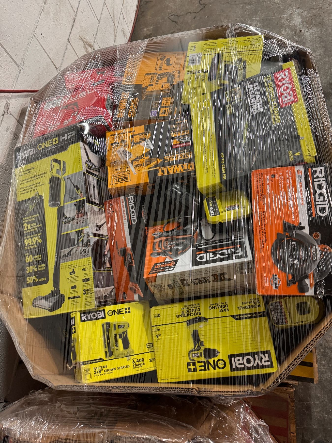 Pallet de Herramienta Home Depot y mercancia general, cada uno de los productos están clasificados como retornos y liquidaciones los cuales pueden venir usados, rotos y incluso completamente nuevos, apueste con responsabilidad y a lo que usted mire.
