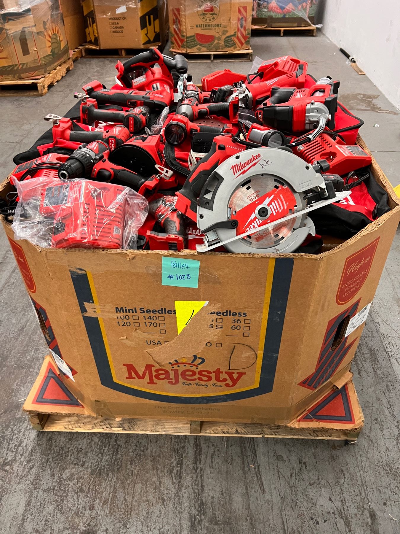 Pallet con Mercancia de Home Depot, Herramienta Milwaukee de alto prestigio