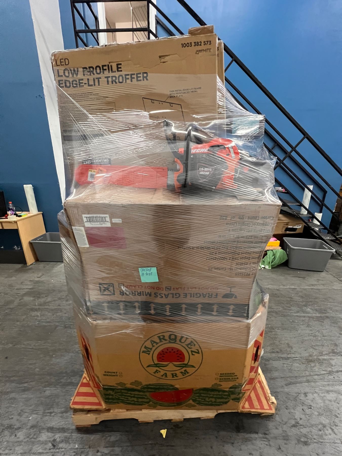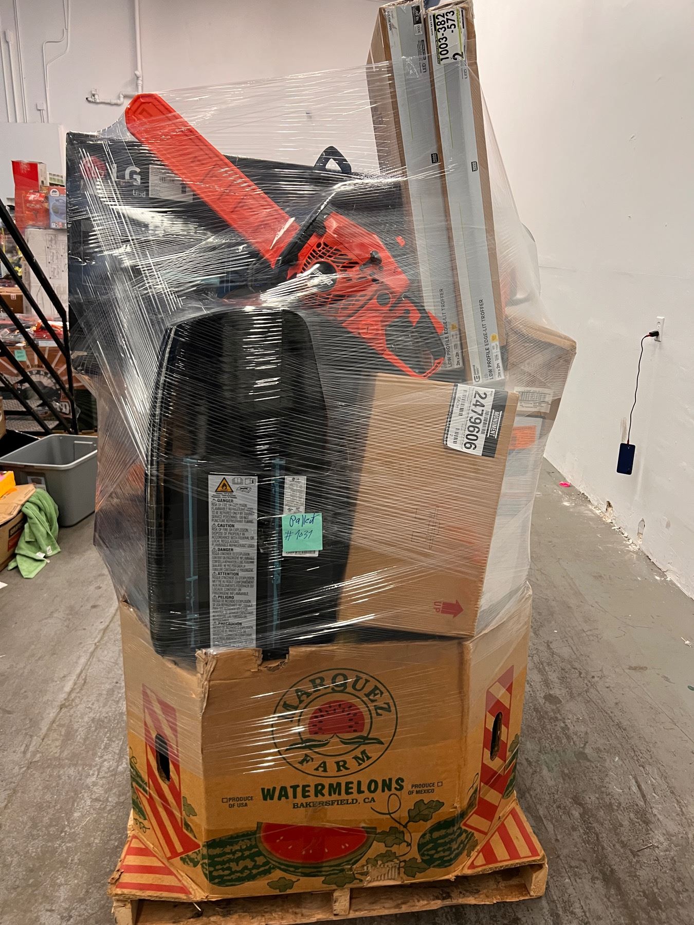 Pallet con Herramienta y Home Improvements de Home Depot. Retornos y Sobrecargo