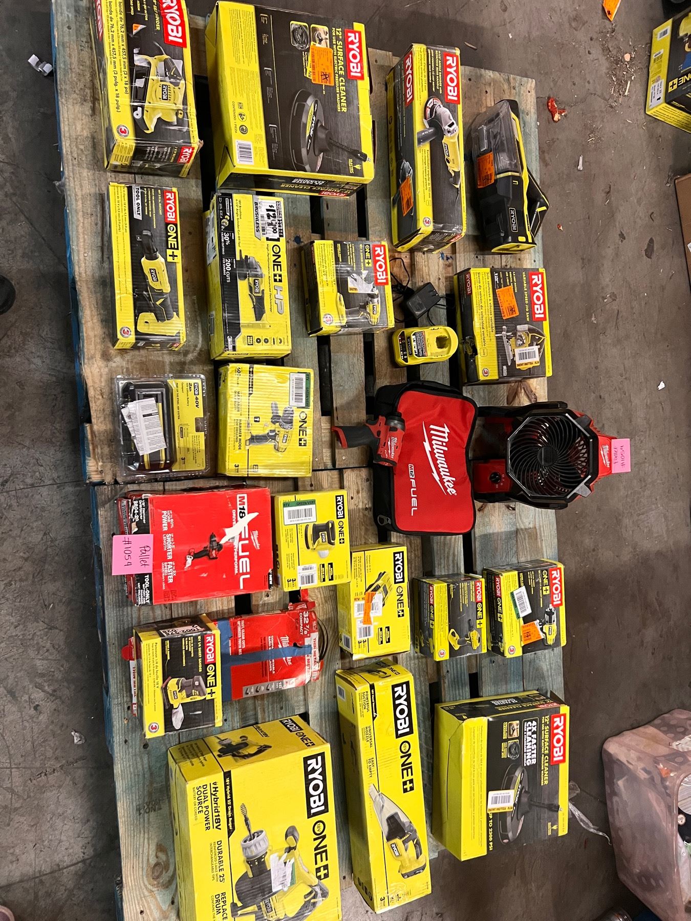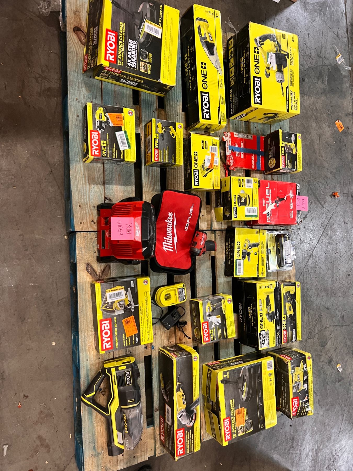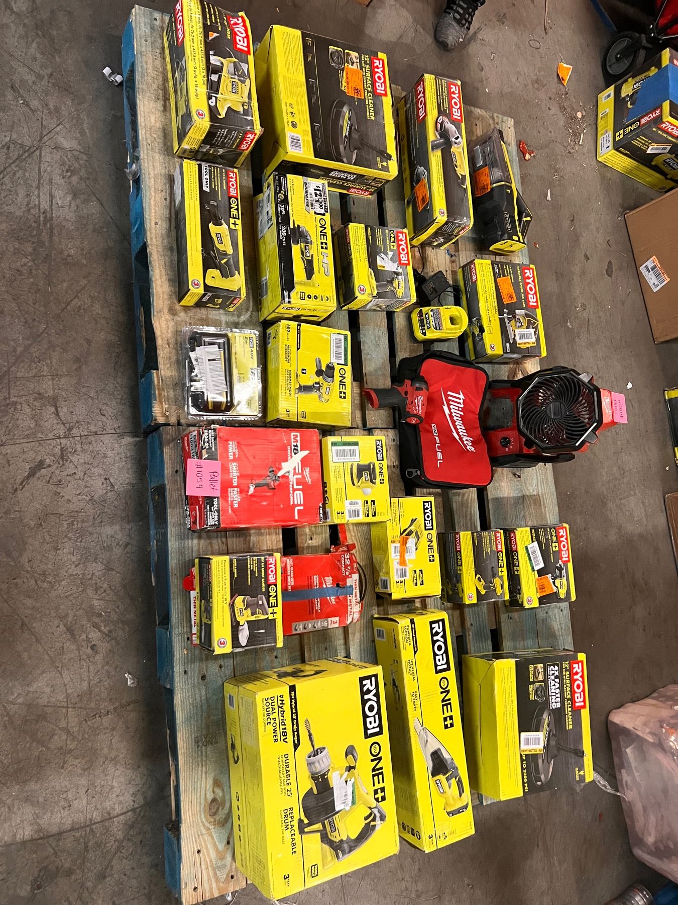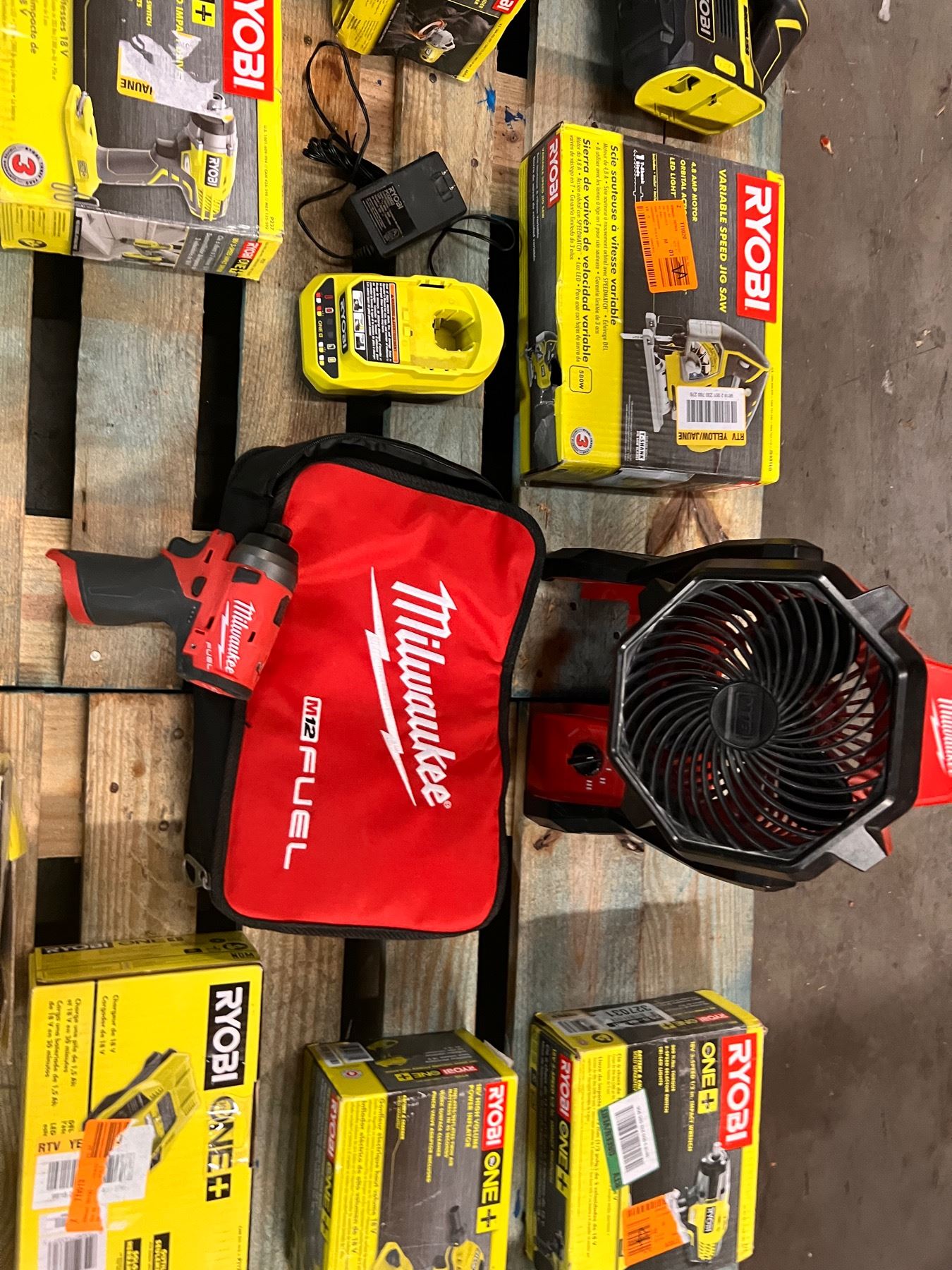 Pallet con Herramienta Milwaukee y Ryobi en su mayoría retornos.