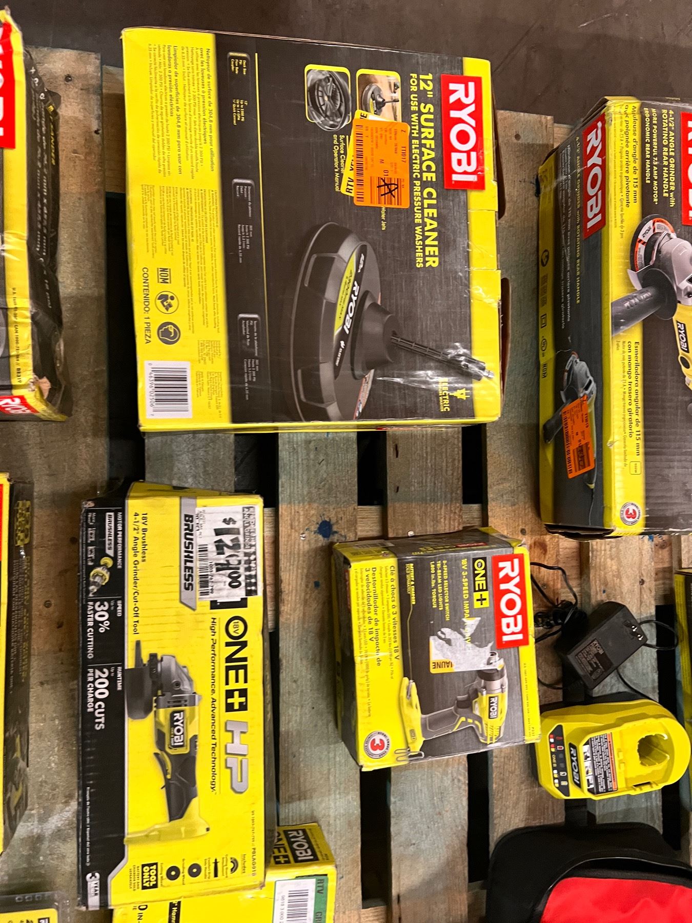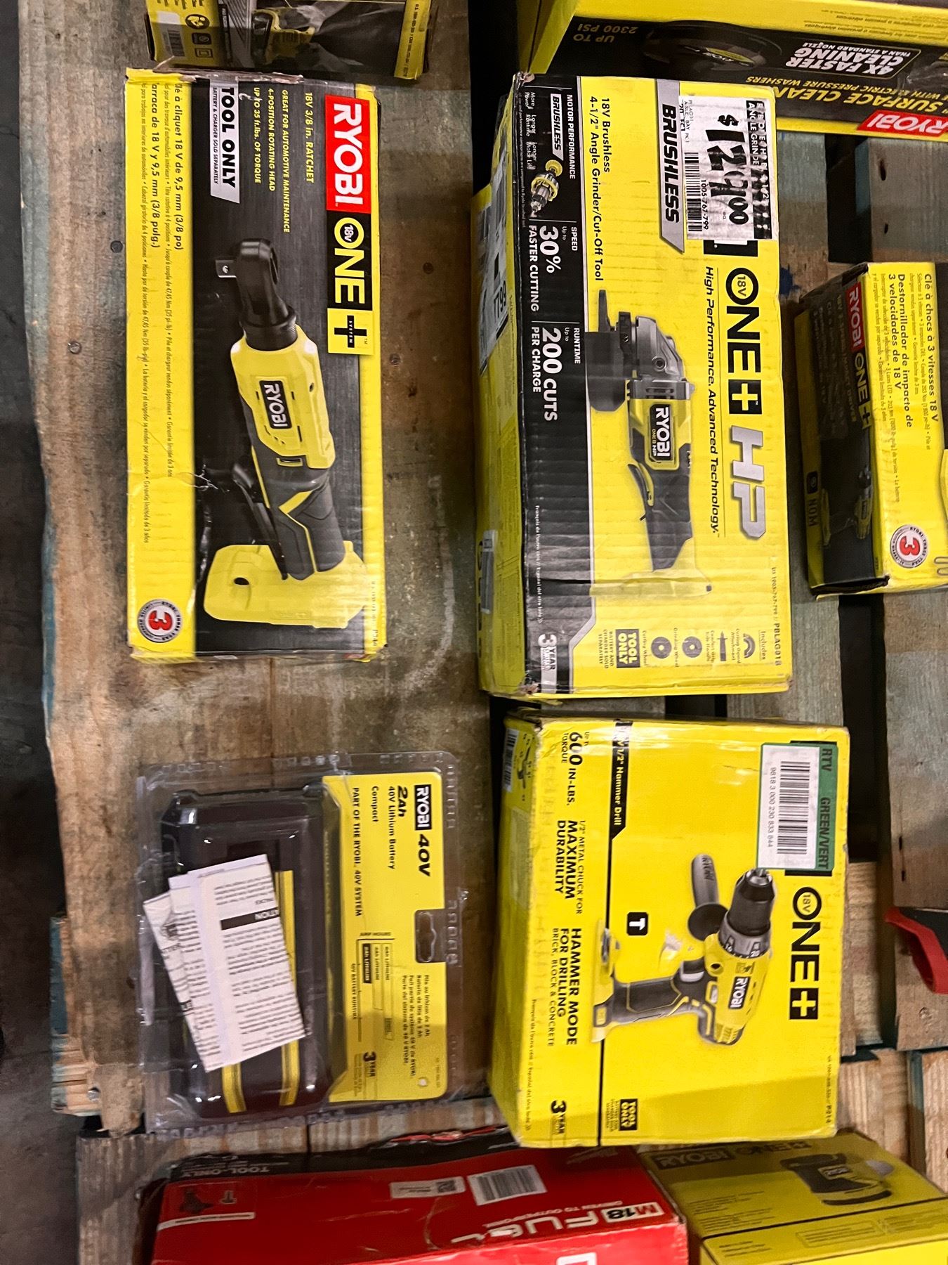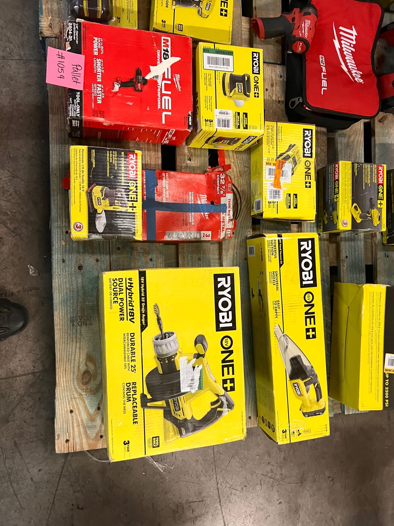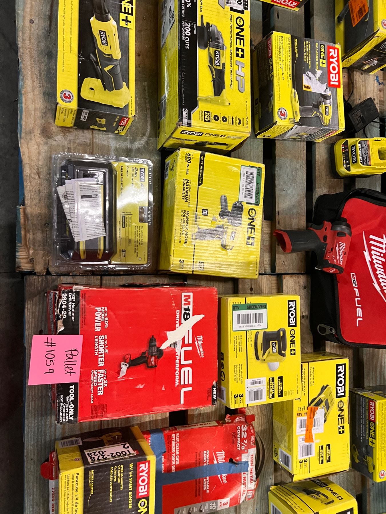 Pallet con Herramienta Milwaukee y Ryobi en su mayoría retornos.