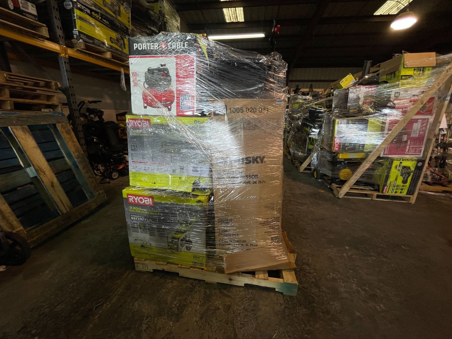 In this pallet you could find merchandise from the best specialized tool stores in the United States, (Home Depot, Lowe's, etc.) Balances, returns and excess inventory.