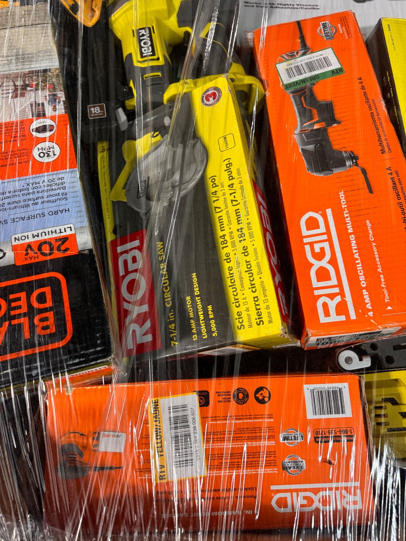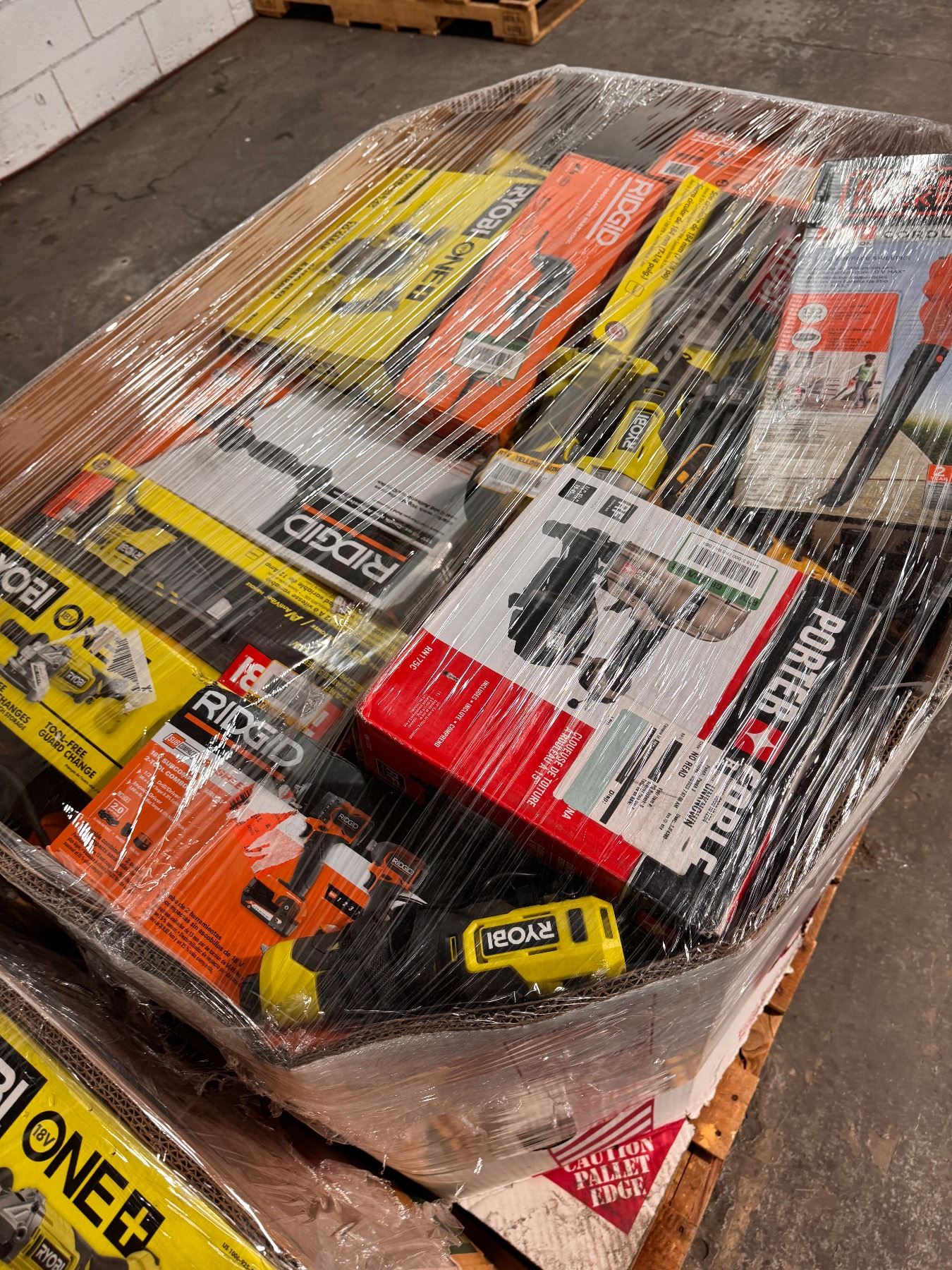 Pallet de Herramienta Home Depot y mercancia general, cada uno de los productos están clasificados como retornos y liquidaciones los cuales pueden venir usados, rotos y incluso completamente nuevos, apueste con responsabilidad y a lo que usted mire.