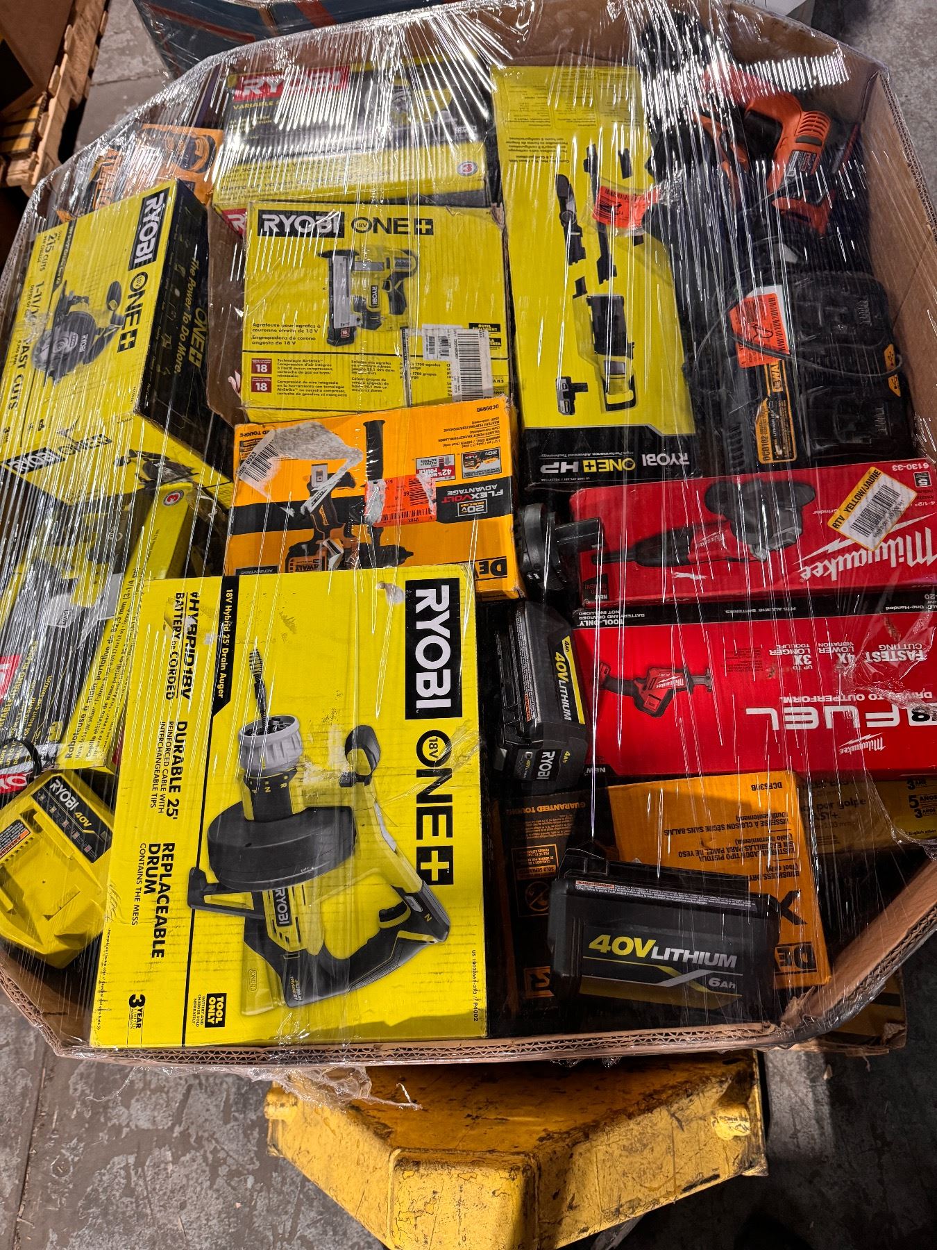 Pallet de Herramienta Home Depot y mercancia general, cada uno de los productos están clasificados como retornos y liquidaciones los cuales pueden venir usados, rotos y incluso completamente nuevos, apueste con responsabilidad y a lo que usted mire.
