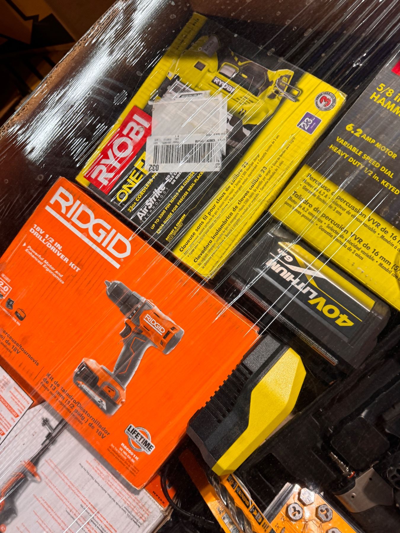 Pallet de Herramienta Home Depot y mercancia general, cada uno de los productos están clasificados como retornos y liquidaciones los cuales pueden venir usados, rotos y incluso completamente nuevos, apueste con responsabilidad y a lo que usted mire.