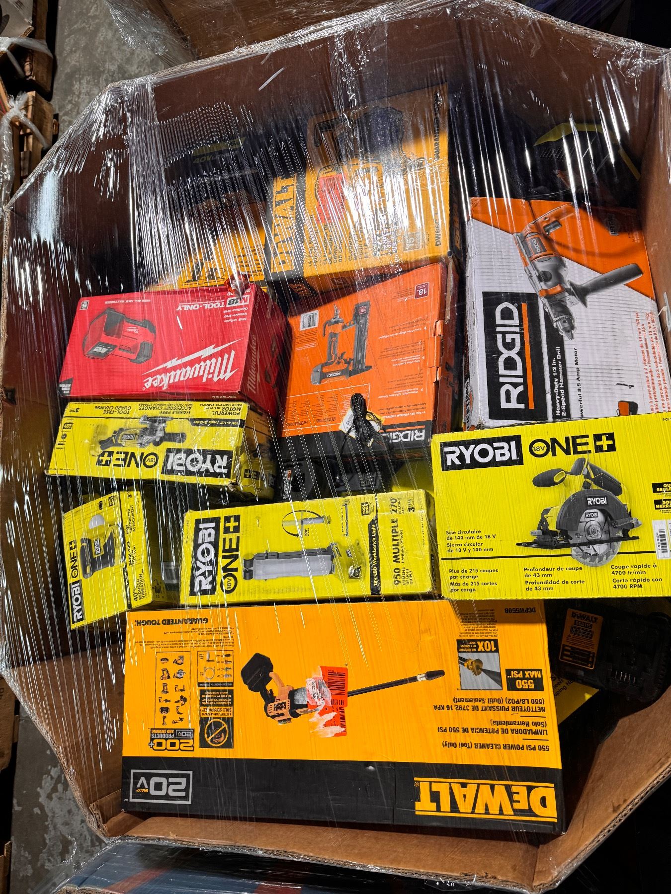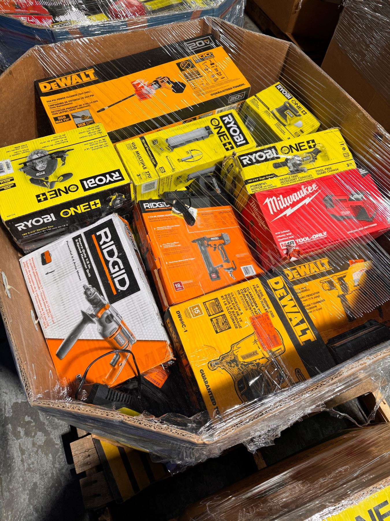 Pallet de Herramienta Home Depot y mercancia general, cada uno de los productos están clasificados como retornos y liquidaciones los cuales pueden venir usados, rotos y incluso completamente nuevos, apueste con responsabilidad y a lo que usted mire.