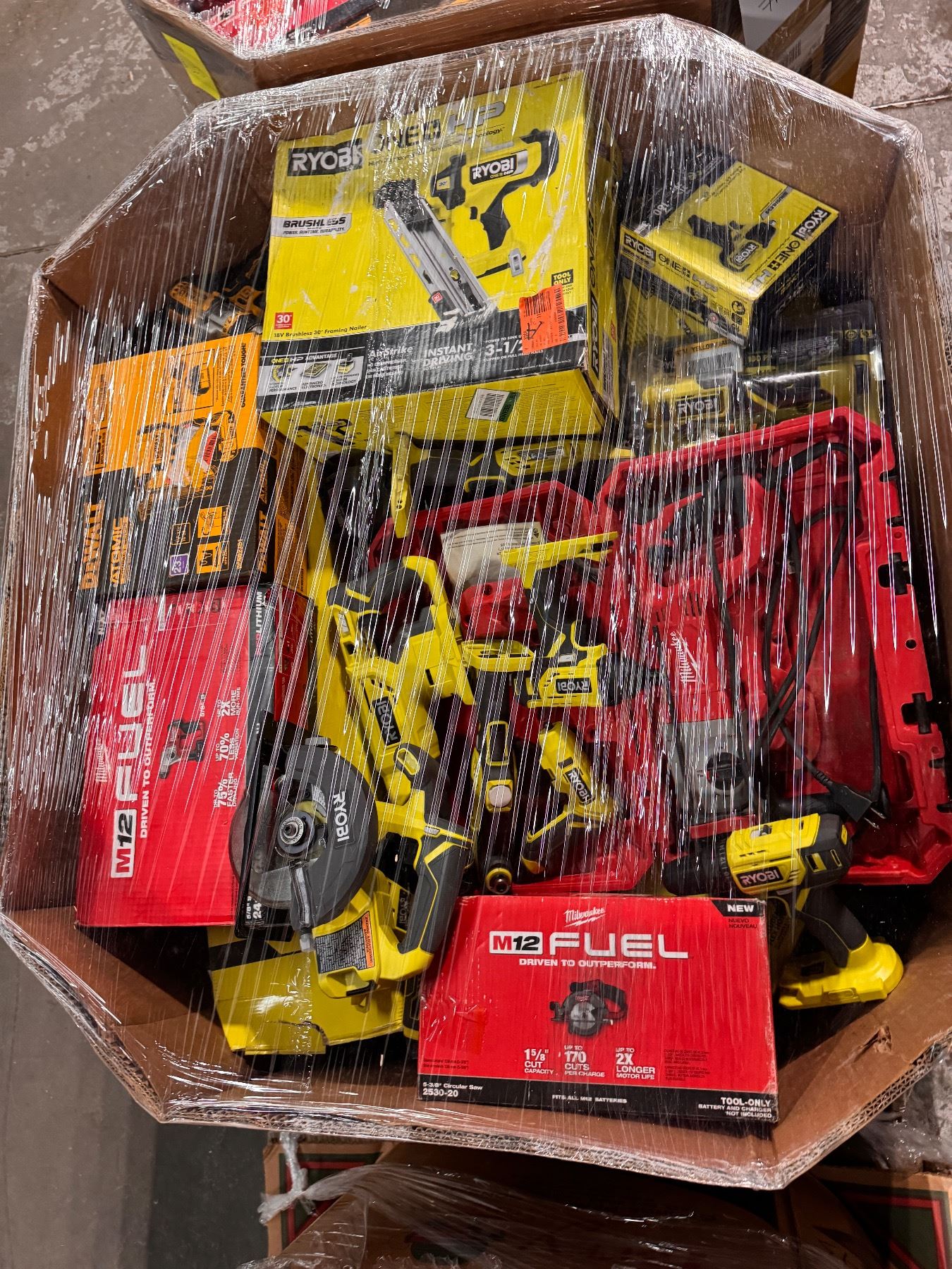 Pallet de Herramienta Home Depot y mercancia general, cada uno de los productos están clasificados como retornos y liquidaciones los cuales pueden venir usados, rotos y incluso completamente nuevos, apueste con responsabilidad y a lo que usted mire.