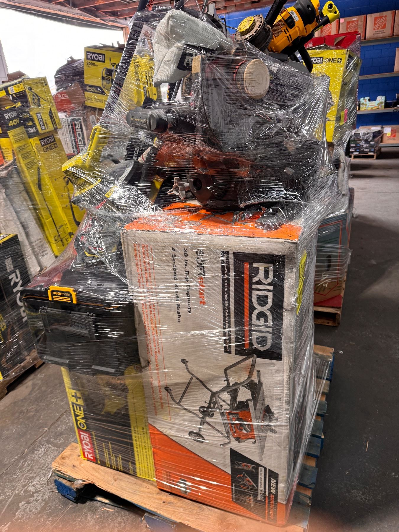 Pallet de Herramienta Home Depot, cada uno de los productos están clasificados como retornos y liquidaciones los cuales pueden venir usados, rotos y incluso completamente nuevos, apueste con responsabilidad y a lo que usted mire.