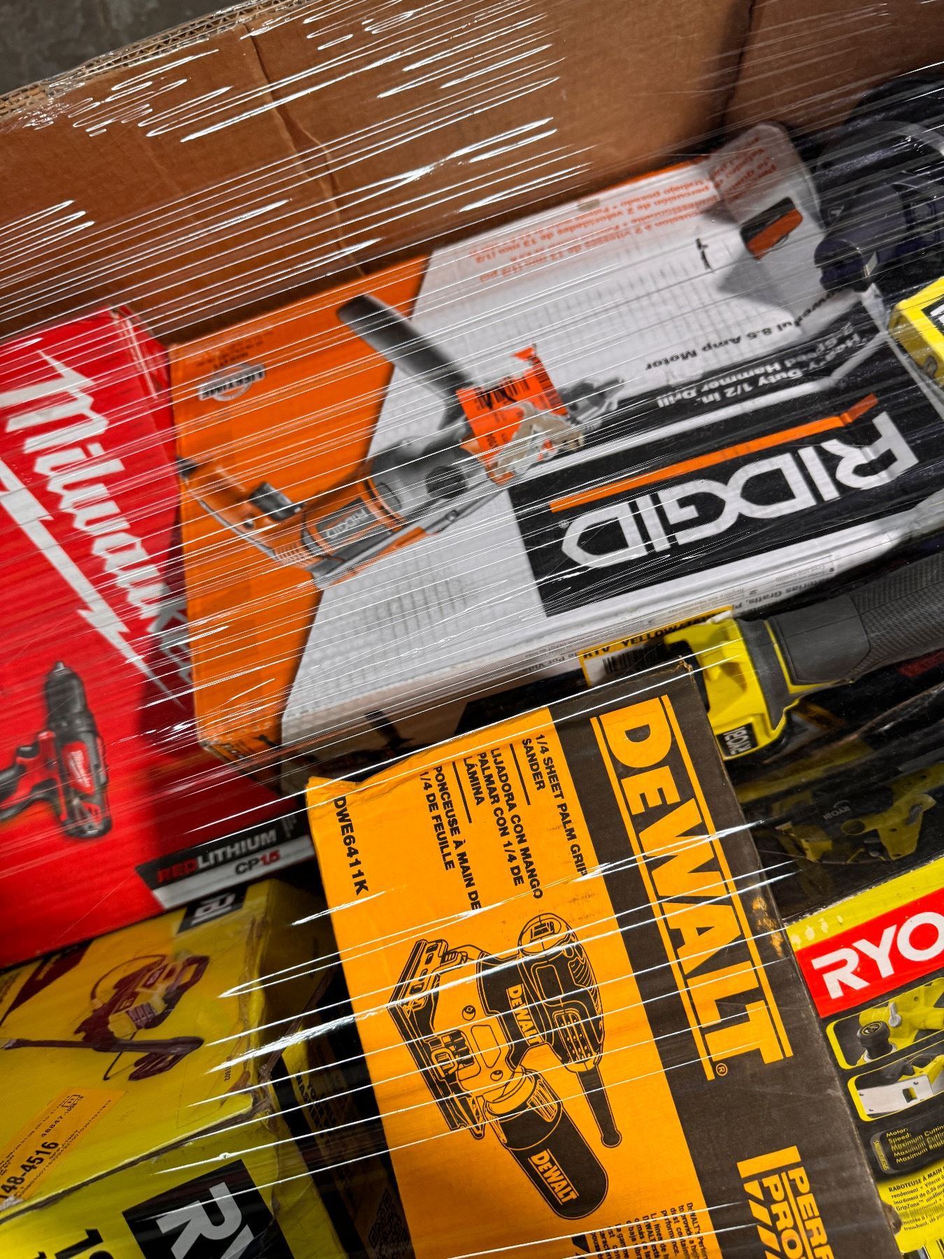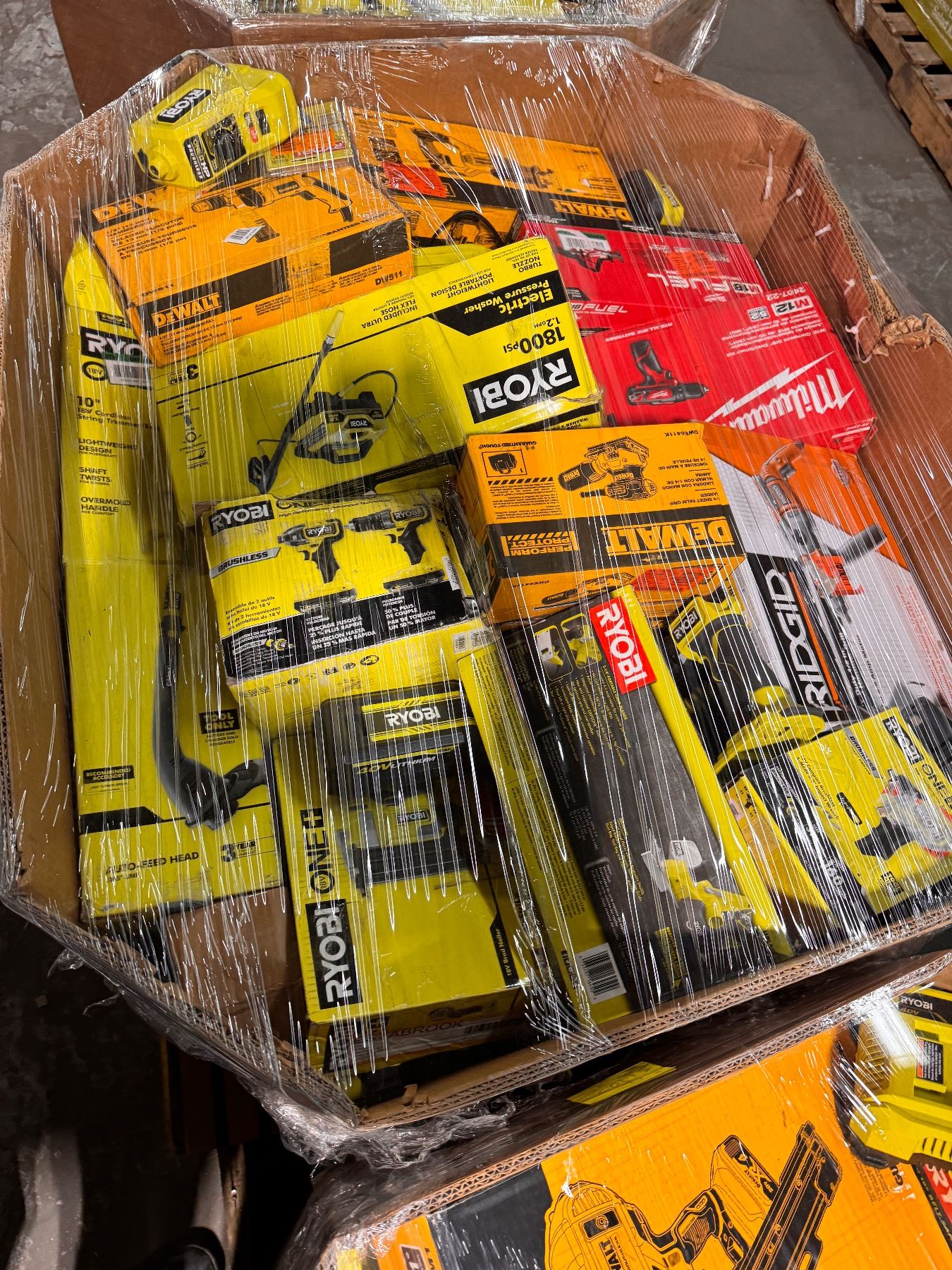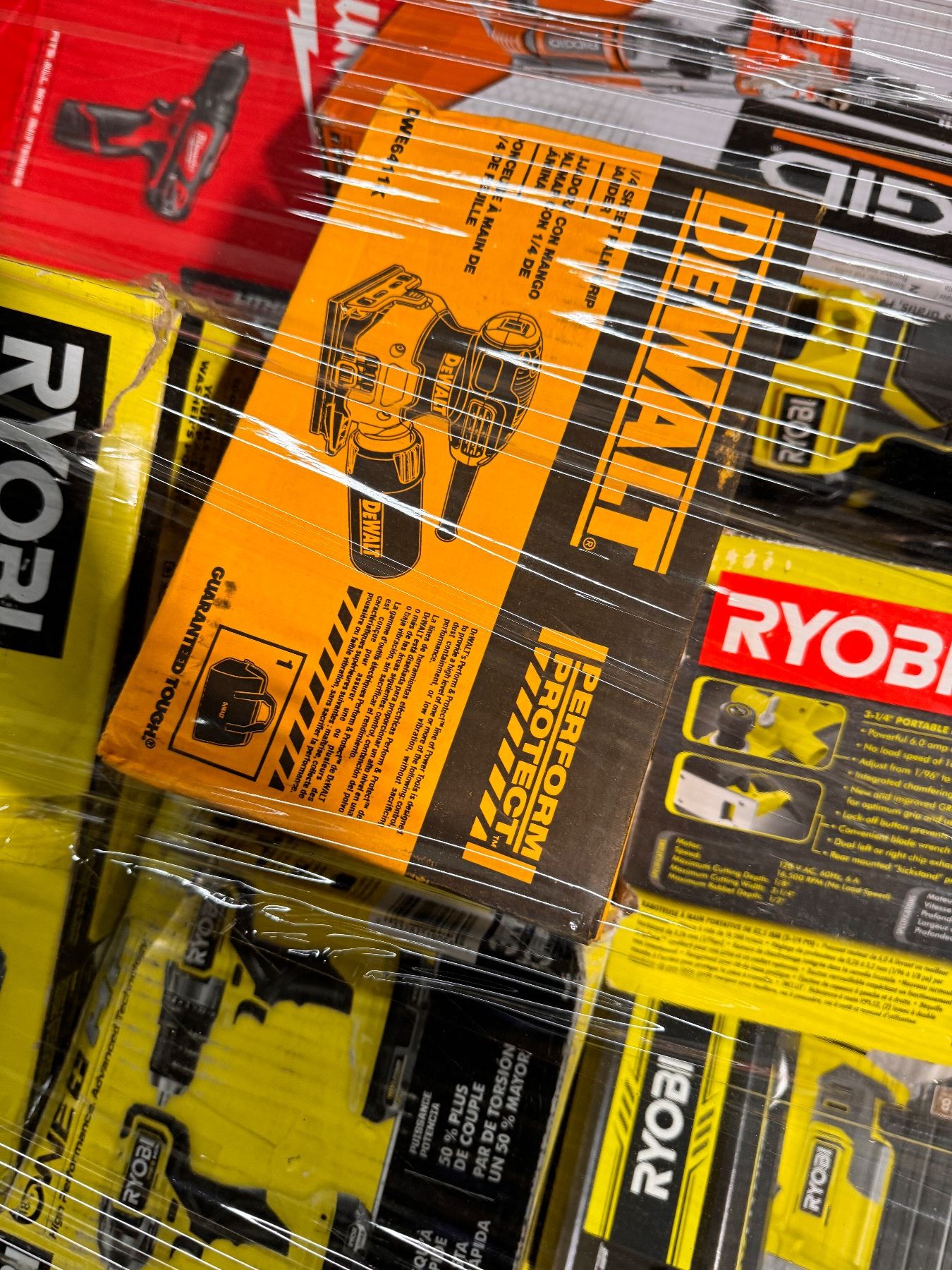 Pallet de Herramienta Home Depot y mercancia general, cada uno de los productos están clasificados como retornos y liquidaciones los cuales pueden venir usados, rotos y incluso completamente nuevos, apueste con responsabilidad y a lo que usted mire.