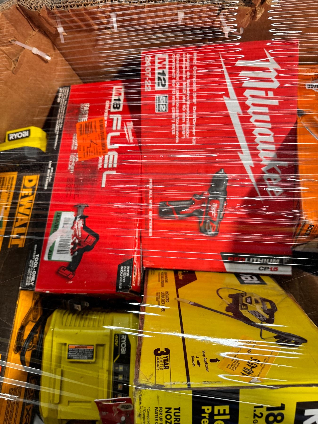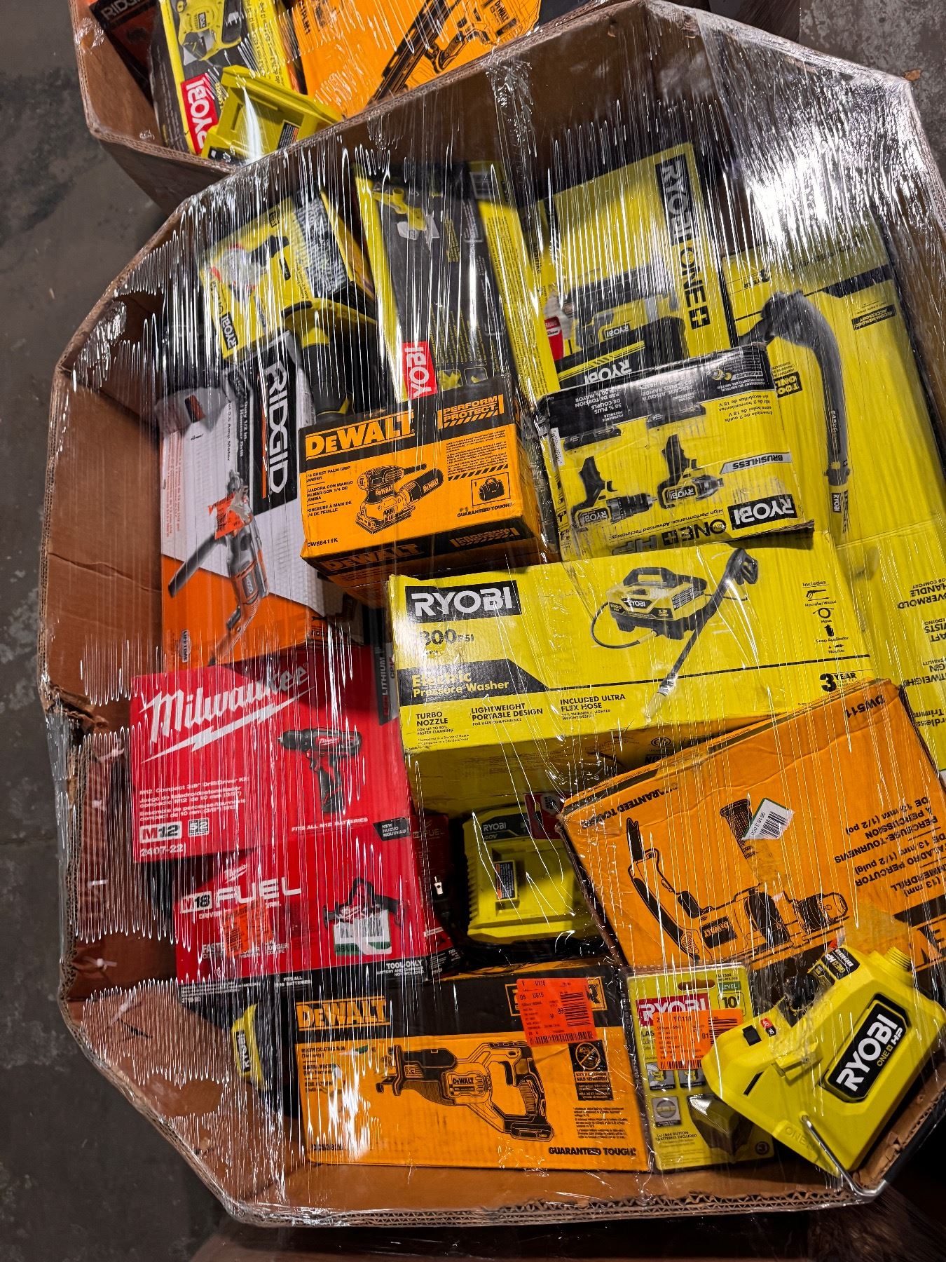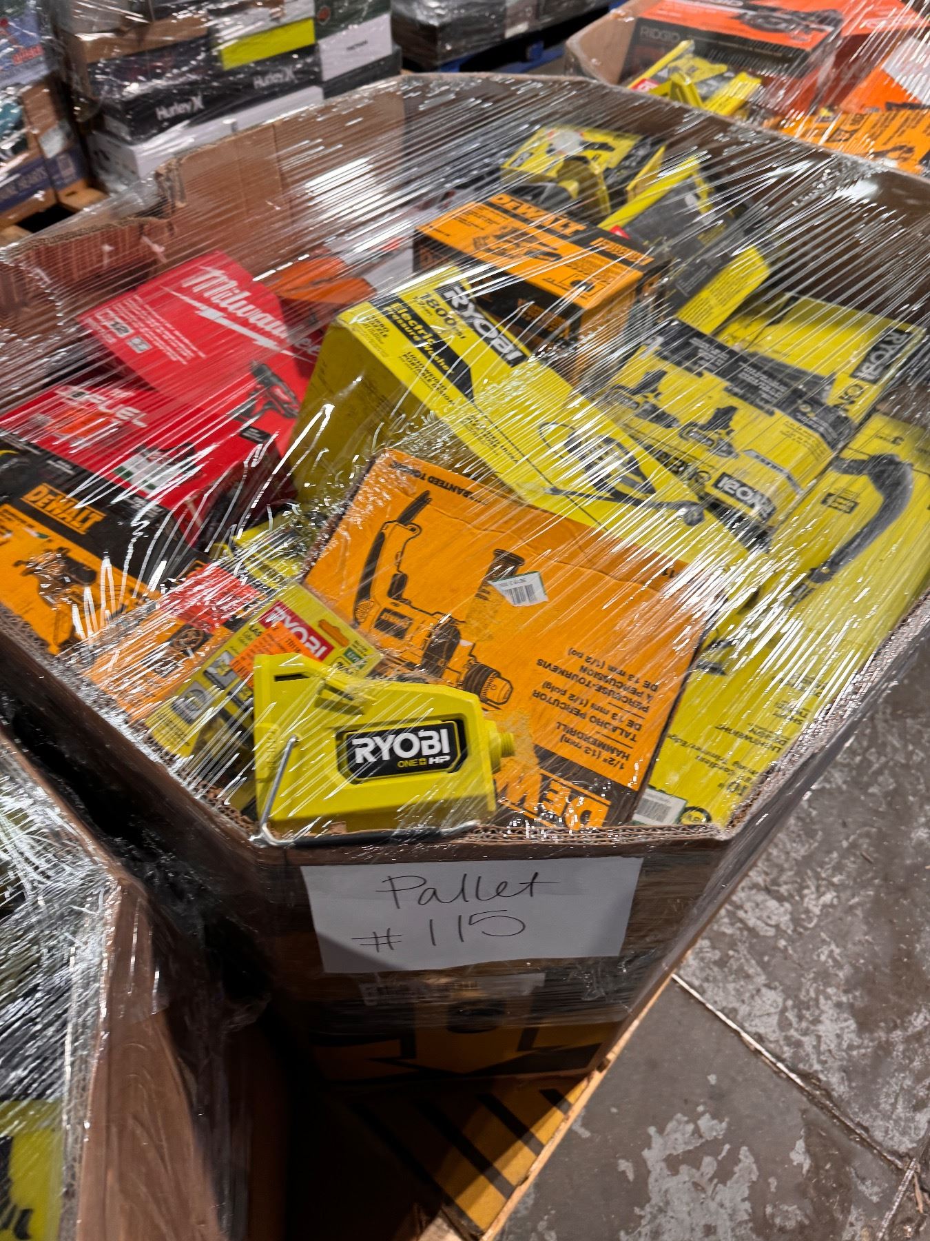 Pallet de Herramienta Home Depot y mercancia general, cada uno de los productos están clasificados como retornos y liquidaciones los cuales pueden venir usados, rotos y incluso completamente nuevos, apueste con responsabilidad y a lo que usted mire.