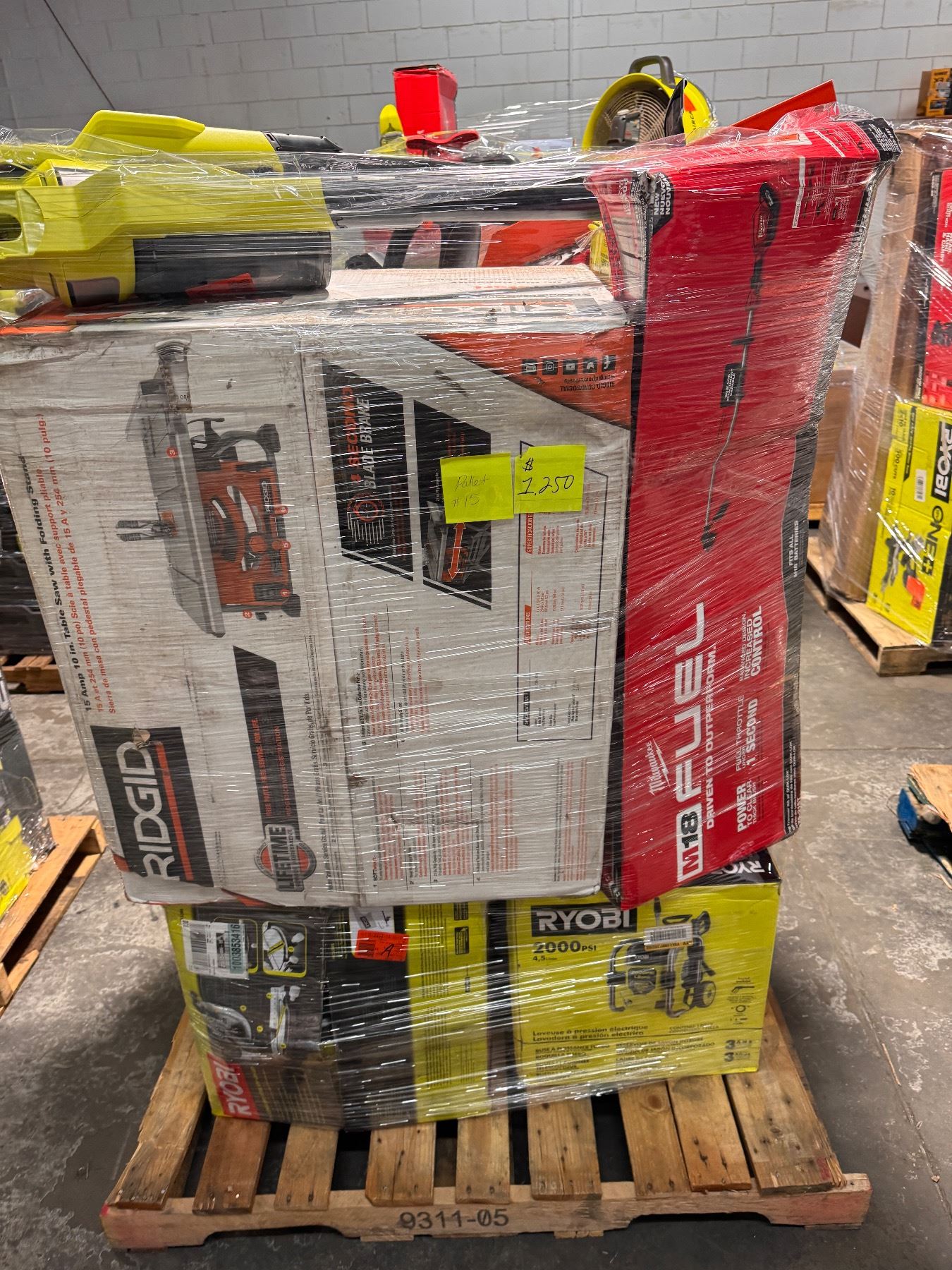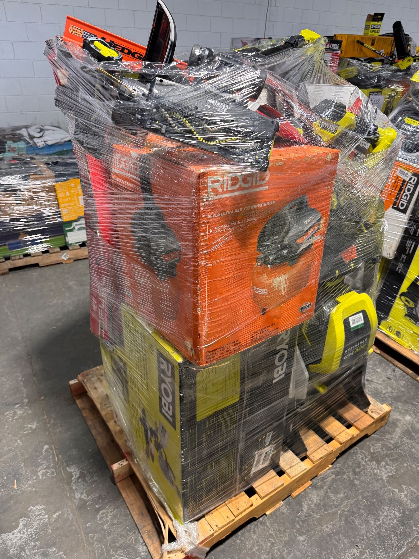 Pallet de Herramienta  Home Depot, cada uno de los productos están clasificados como retornos y liquidaciones los cuales pueden venir usados, rotos y incluso completamente nuevos, apueste con responsabilidad y a lo que usted mire.