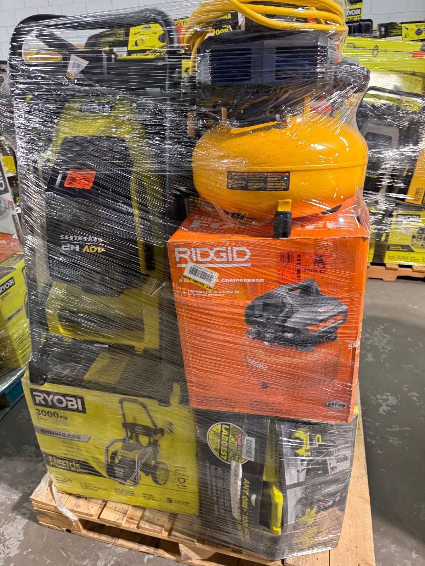 Pallet de Herramienta Home Depot, cada uno de los productos están clasificados como retornos y liquidaciones los cuales pueden venir usados, rotos y incluso completamente nuevos, apueste con responsabilidad y a lo que usted mire.