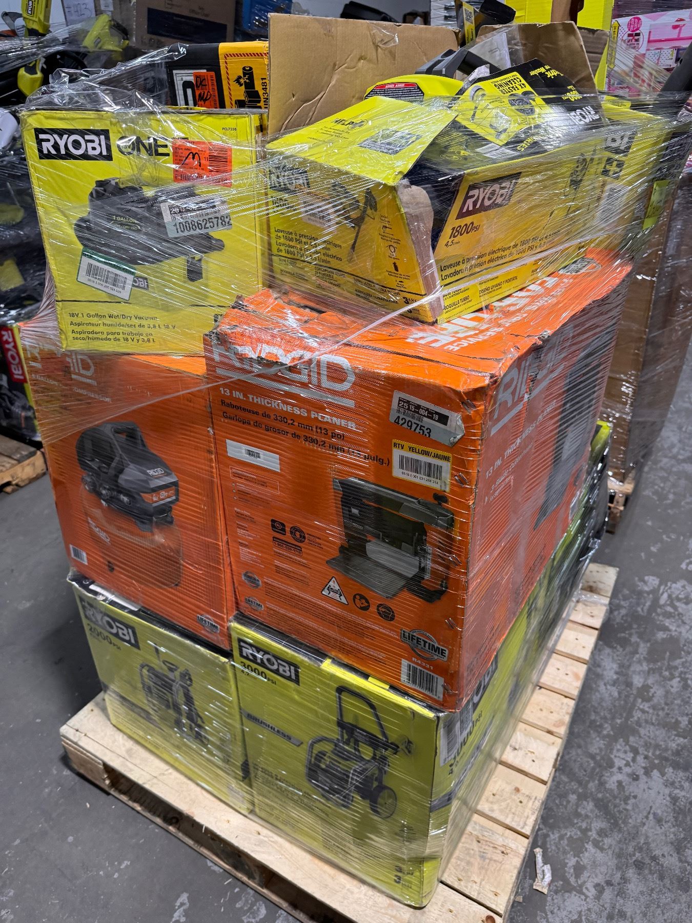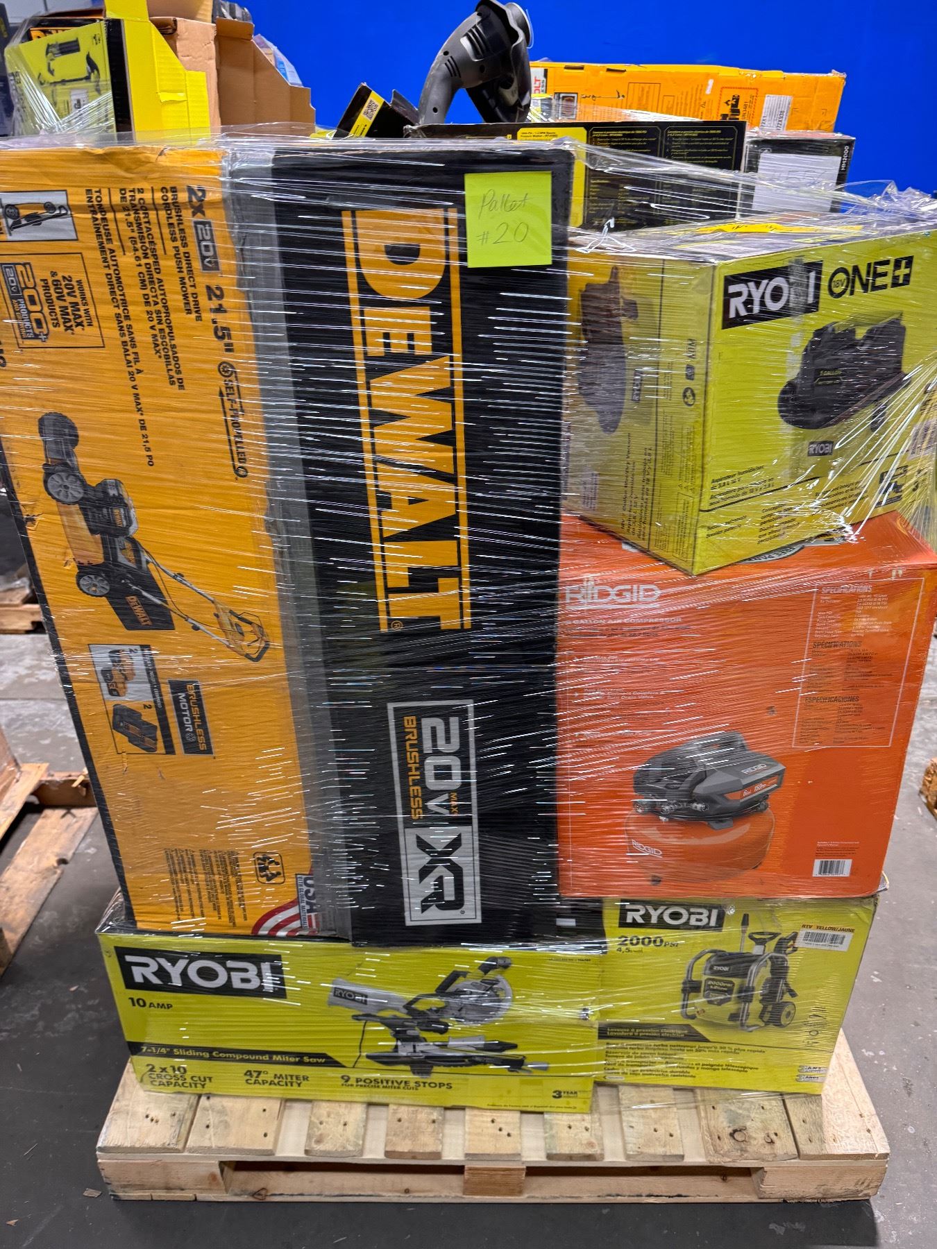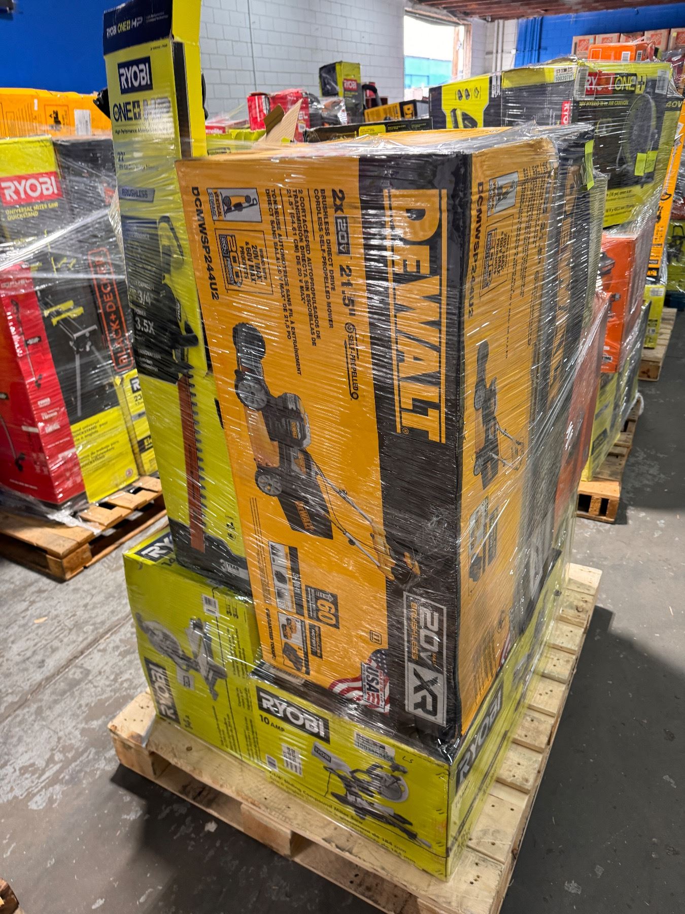 Pallet de Herramienta Home Depot, cada uno de los productos están clasificados como retornos y liquidaciones los cuales pueden venir usados, rotos y incluso completamente nuevos, apueste con responsabilidad y a lo que usted mire.