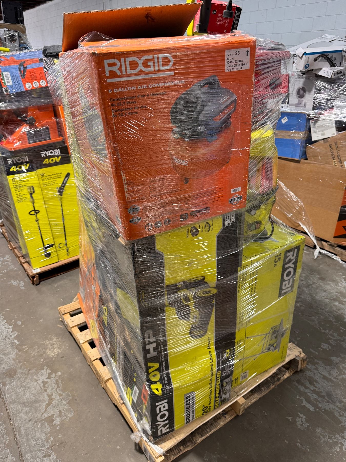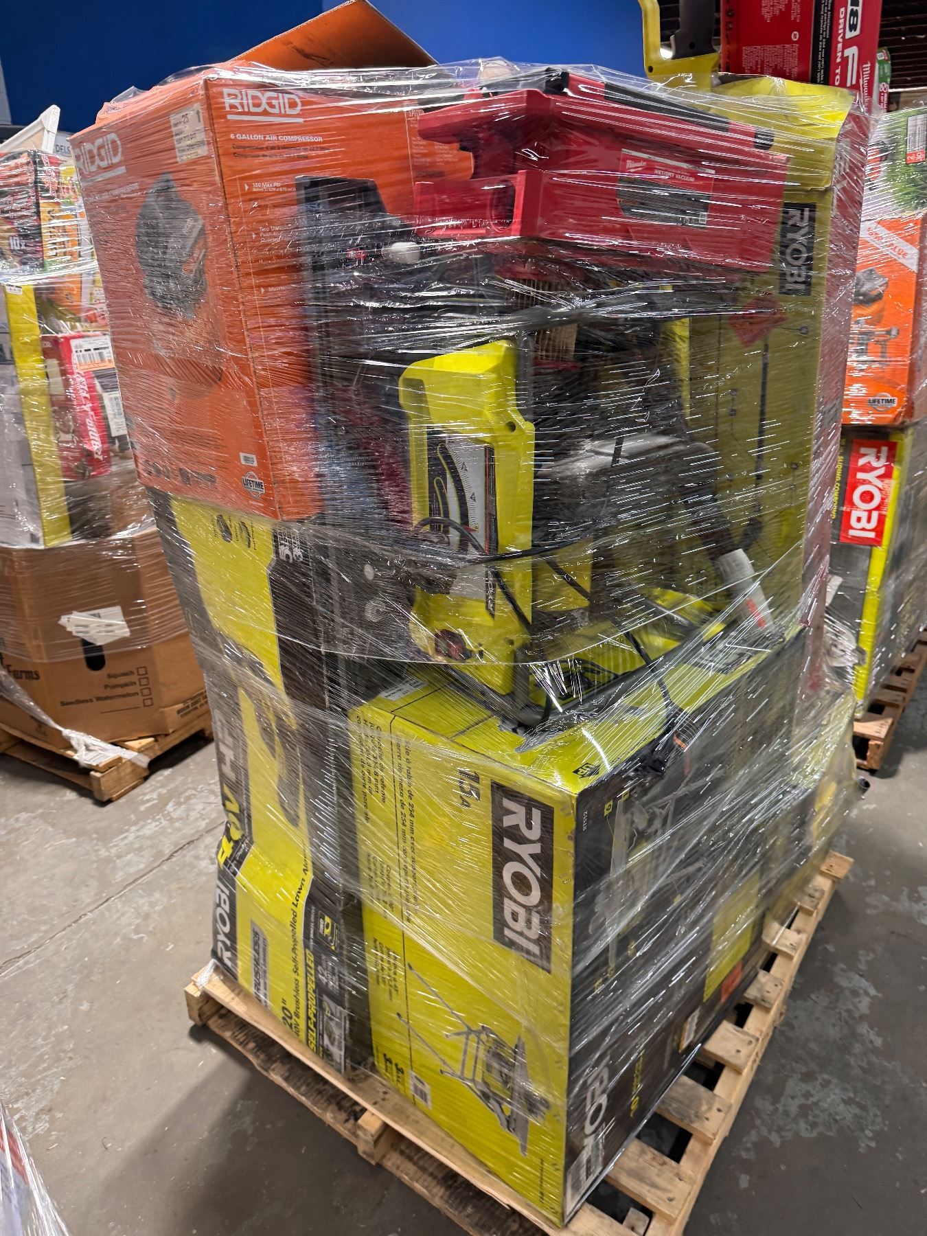 Pallet de Herramienta Home Depot, cada uno de los productos están clasificados como retornos y liquidaciones los cuales pueden venir usados, rotos y incluso completamente nuevos, apueste con responsabilidad y a lo que usted mire.