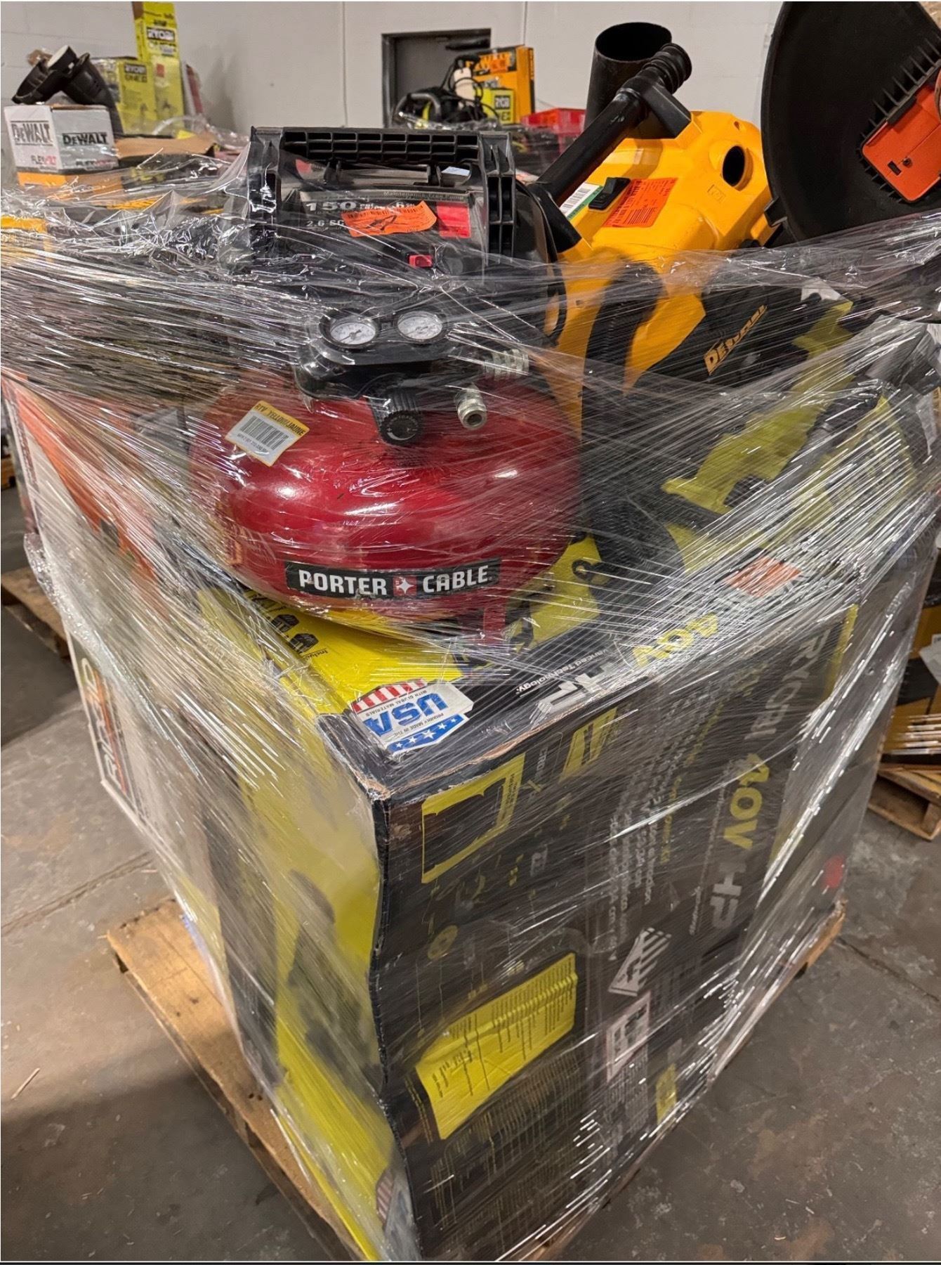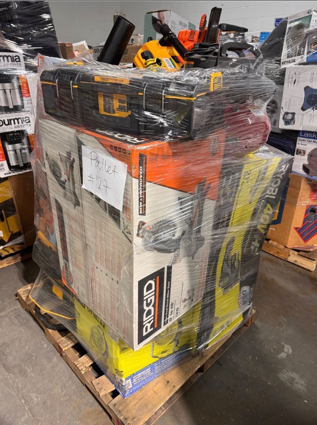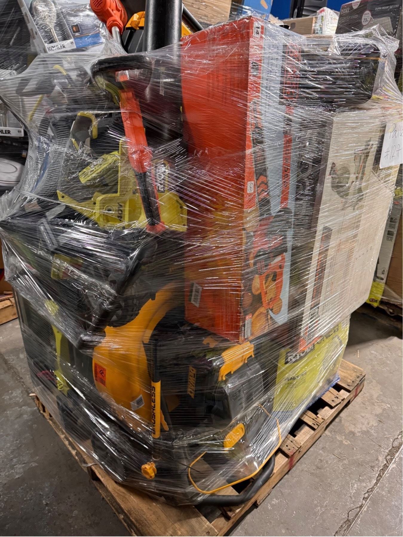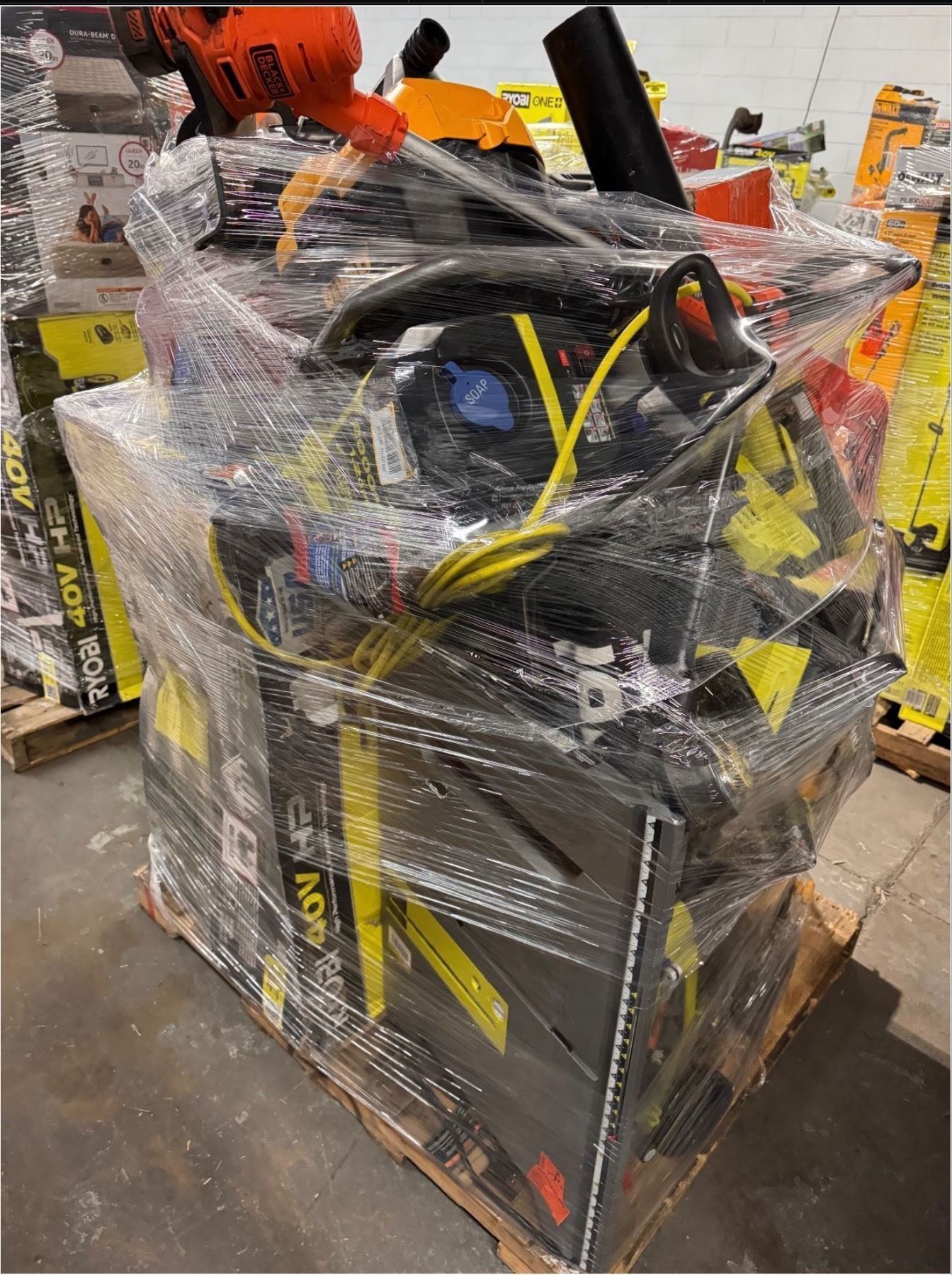 Pallet de Herramienta Home Depot, cada uno de los productos están clasificados como retornos y liquidaciones los cuales pueden venir usados, rotos y incluso completamente nuevos, apueste con responsabilidad y a lo que usted mire.