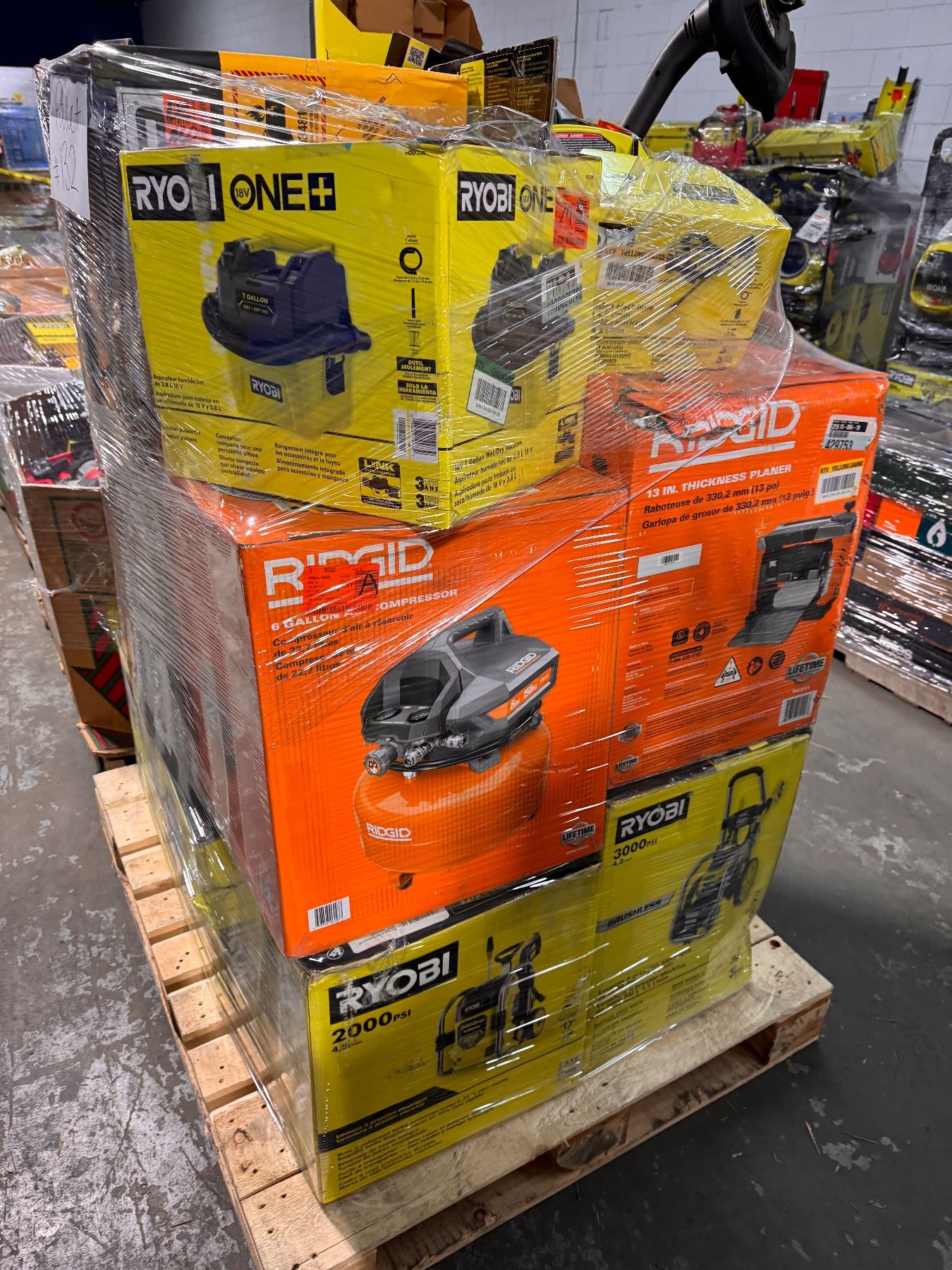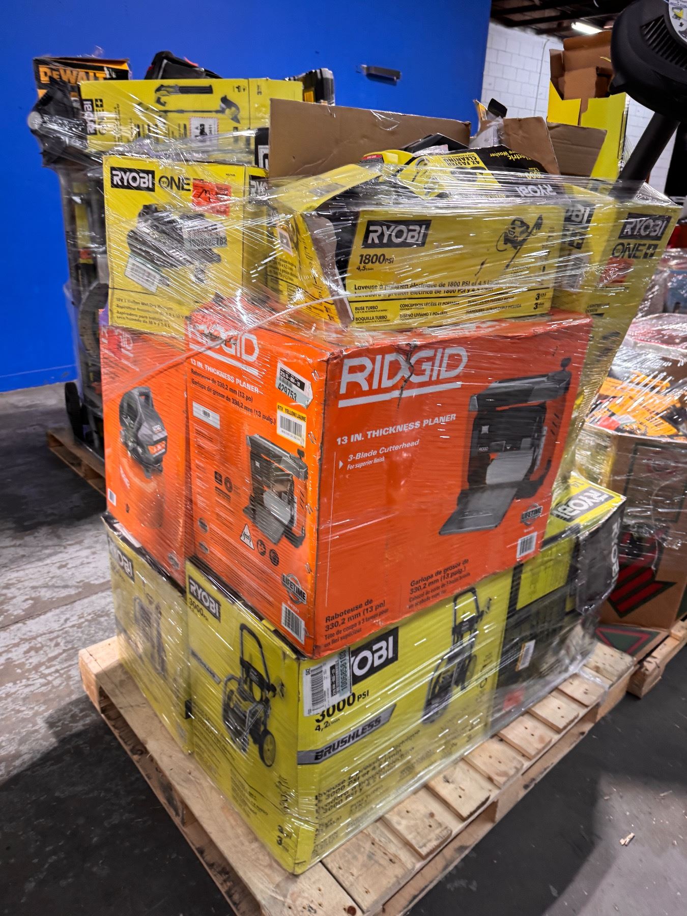 Pallet de Herramienta Home Depot, cada uno de los productos están clasificados como retornos y liquidaciones los cuales pueden venir usados, rotos y incluso completamente nuevos, apueste con responsabilidad y a lo que usted mire.