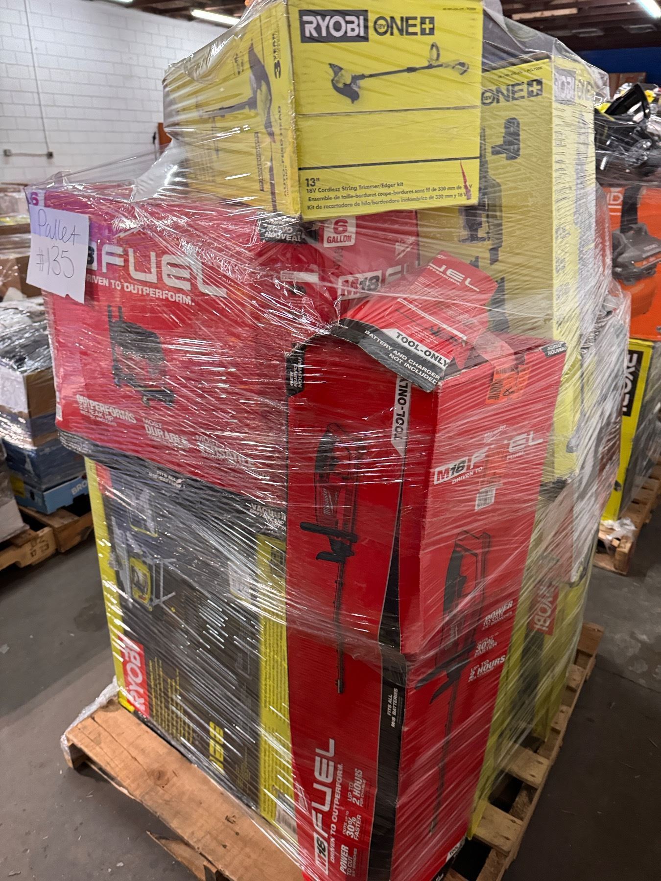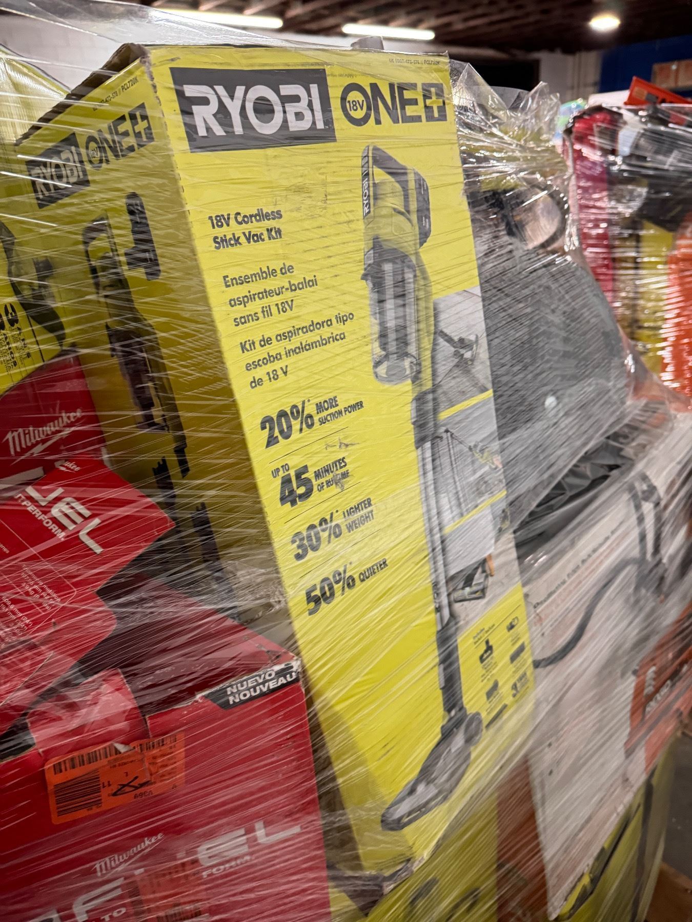 Pallet de Herramienta Home Depot, cada uno de los productos están clasificados como retornos y liquidaciones los cuales pueden venir usados, rotos y incluso completamente nuevos, apueste con responsabilidad y a lo que usted mire.