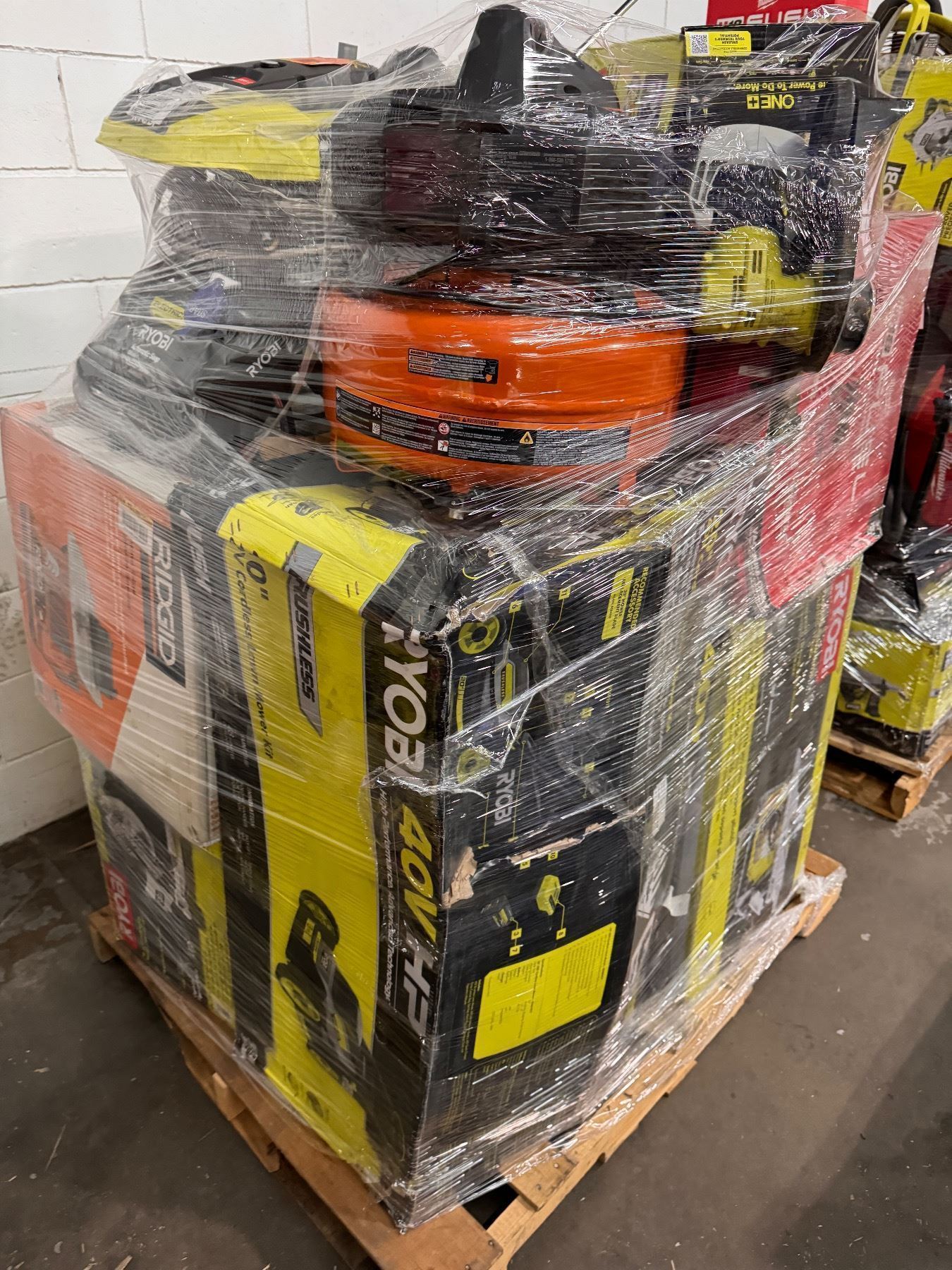Pallet de Herramienta Home Depot, cada uno de los productos están clasificados como retornos y liquidaciones los cuales pueden venir usados, rotos y incluso completamente nuevos, apueste con responsabilidad y a lo que usted mire.