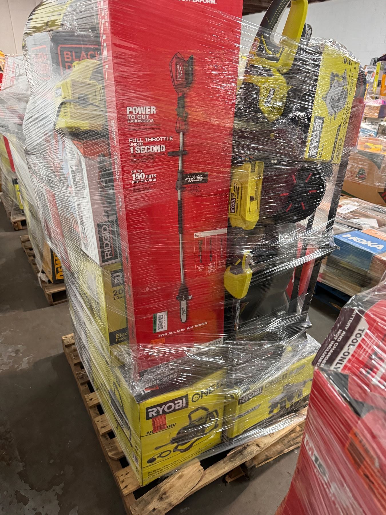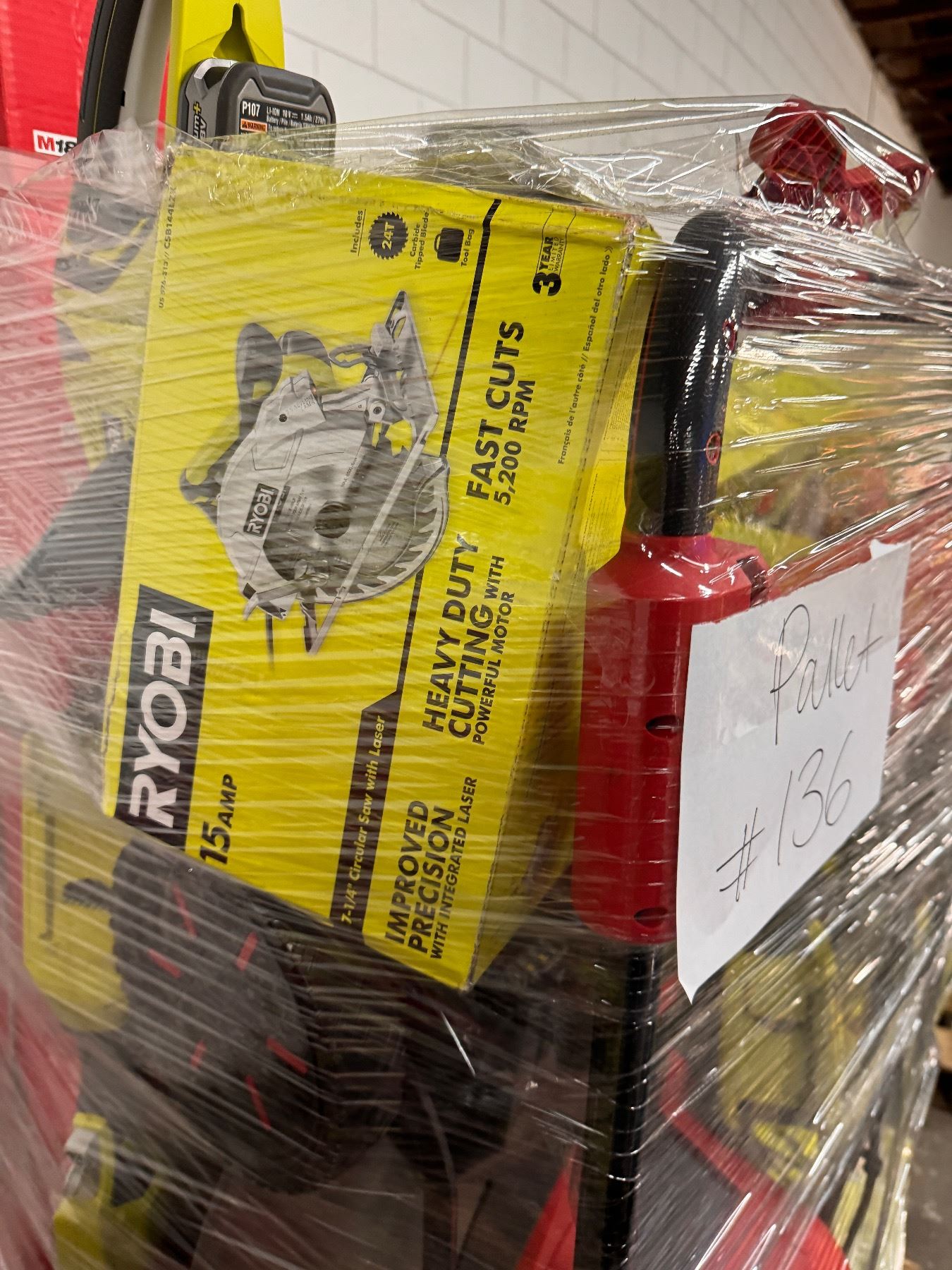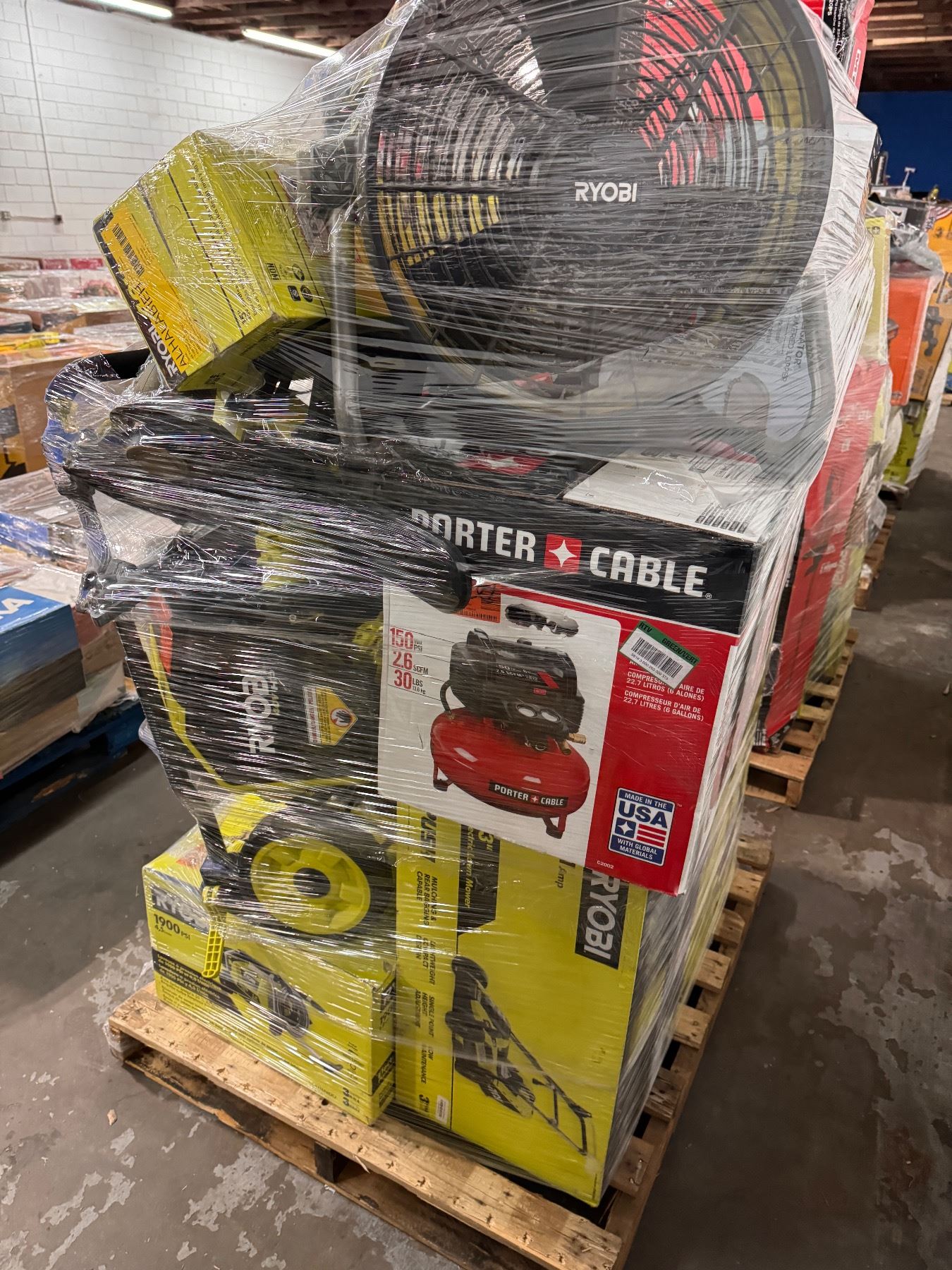 Pallet de Herramienta Home Depot, cada uno de los productos están clasificados como retornos y liquidaciones los cuales pueden venir usados, rotos y incluso completamente nuevos, apueste con responsabilidad y a lo que usted mire.